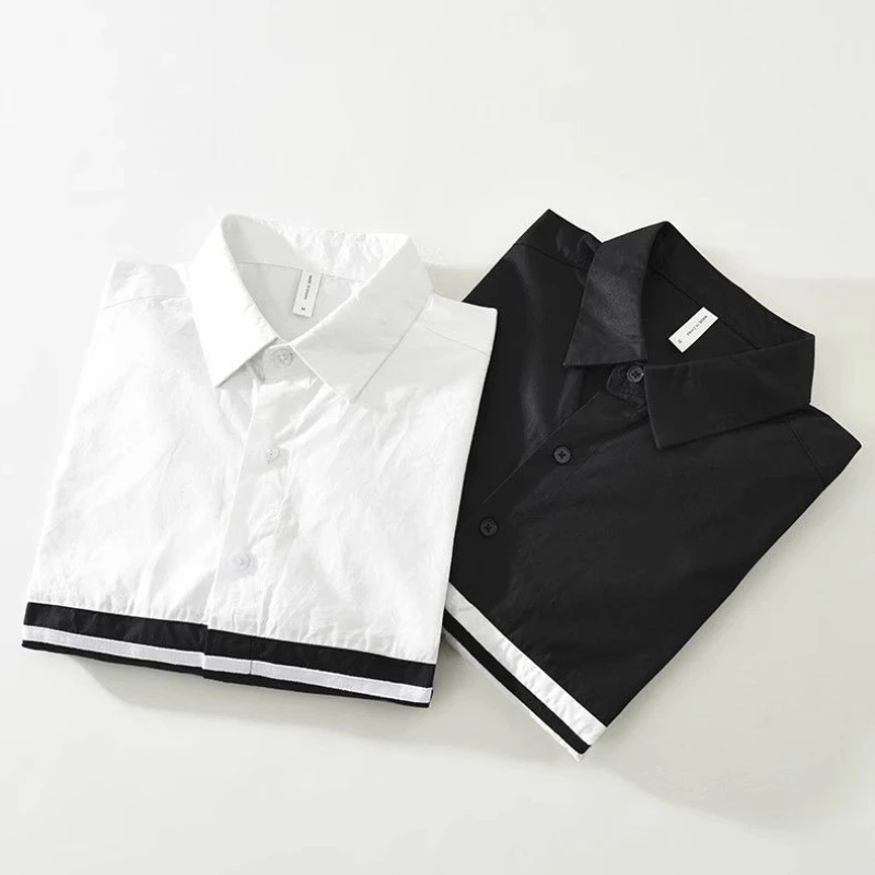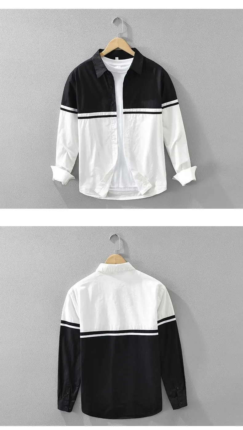 Polo Neck Contrast Patchwork Korean Blouse Men's Spring Autumn New Long Sleeve Loose Casual Shirt Tops Fashion Trend Men Clothes
