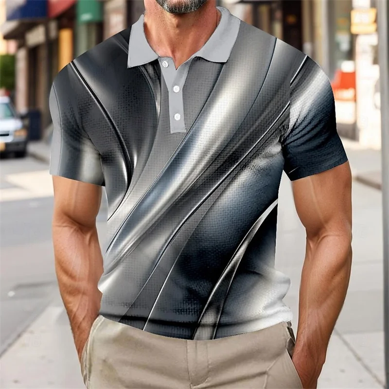 Polo shirt fashion men gradient line summer short sleeved casual daily collar top striped men's clothing top