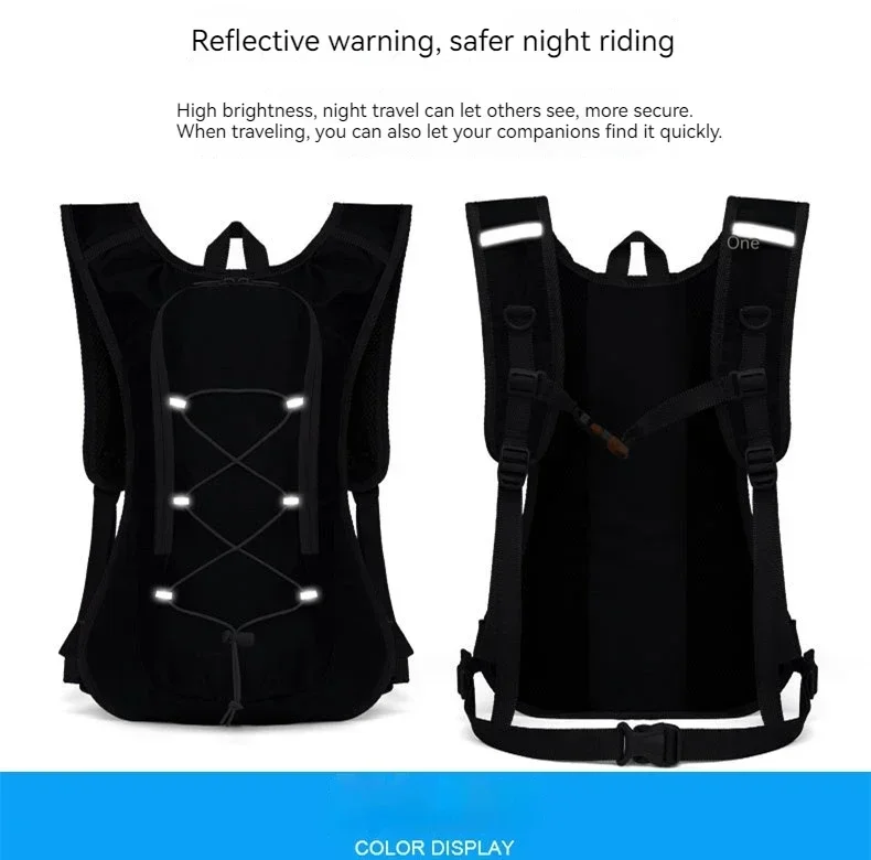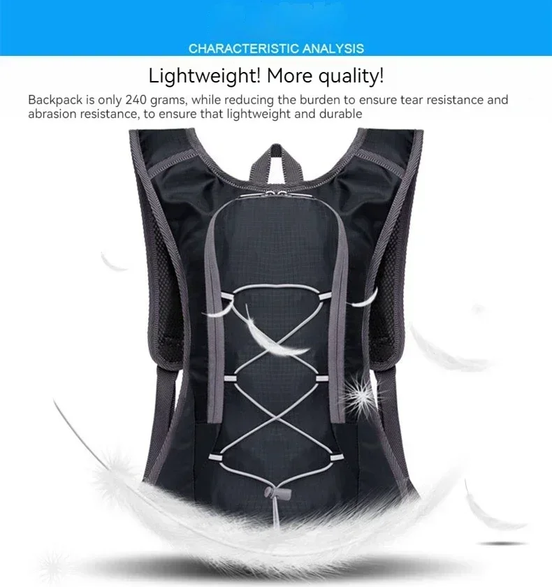 The backpack weighs only 240 grams and is easy to carry, making it suitable for outdoor sports. The fabric is waterproof and not afraid of rainy days when used outdoors. There is a reflective warning strip on the front, which can improve safety when traveling at night.