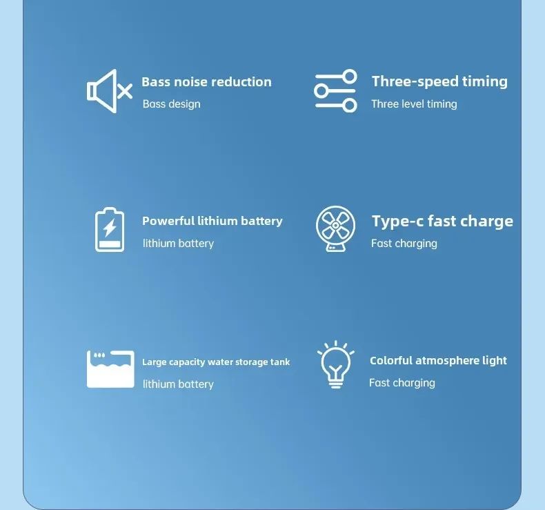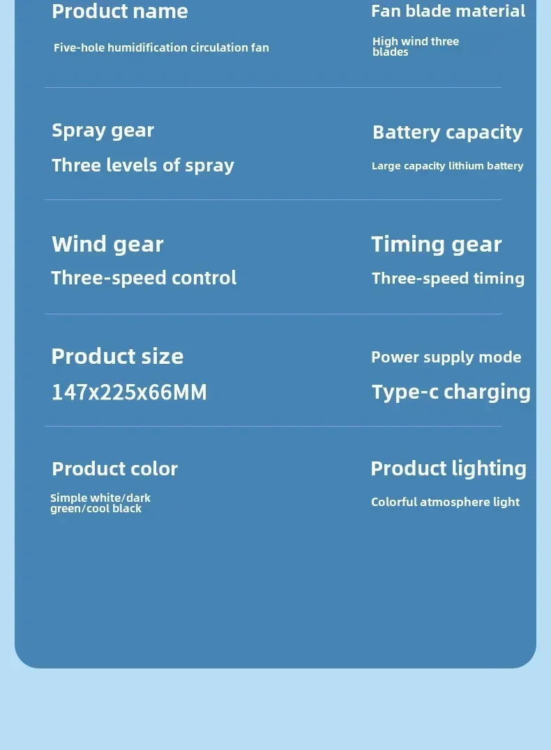 Connector: type-c/USB straight plugFan atomization gears: three-speed fan/three-speed atomization