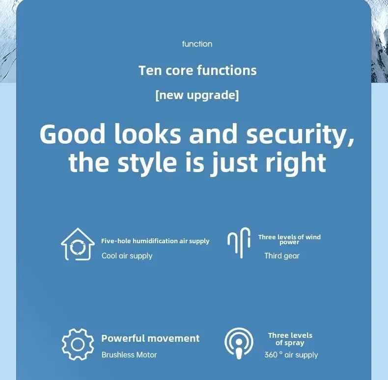 *7 Colors & Low Noise: This portable air cooler fan features a 7-color light design that provides soft lighting. Turn on* 3-in-1 function: includes functions of fan, air conditioner and air humidifier. If you feel the air is dry and hot, buy it. It is not only a personal air conditioner but also an air humidifier. In hot summer, when you add ice cubes and water to the sink, you will feel the cool air and enjoy the cool summer. At the same time, it can also humidify the air in autumn and winter.*3 Wind and 3 Spray: The air cooler fan has 3 wind speed modes (low/medium/high) and 3 spray modes, you can adjust the wind speed and spray mode according to the occasion. It is a combination of personal air conditioning cooler, fan, and air humidifier, with a three-in-one multi-functional design, allowing you to stay away from the hot summer and enjoy a cool summer. 7 colorful lights create a romantic atmosphere on the dining table or coffee table on hot summer nights! Put it in the bedroom and accompany you into the beautiful night. This air cooler works powerfully and makes low noise, allowing you to sleep comfortably throughout the night in a quiet environment.* Power Mode and Energy Saving: Simply connect the USB cable to your USB port-enabled device. Compatible with computers, mobile power supplies, USB adapters, car chargers and other power supplies that support USB. Low energy consumption, more environmentally friendly and energy-saving. It saves money on your electricity bill and is environmentally friendly.* Portable Design and Large Capacity: The portable design air cooler fan can be easily carried anywhere. In summer, this is the best choice for camping, you can camp easily, perfect for home, office, outdoor picnic, etc. The 600ML large water tank is filled with ice cubes and water, which can spray cold air for hours to keep you cool. Cools your body and makes you happy.