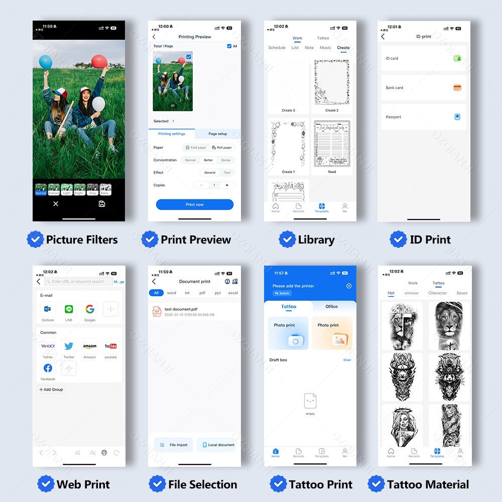 1. Support Multiole Sizes of Thermal Paper?Folding Paper/Roll Paper/Tattoo Paper.