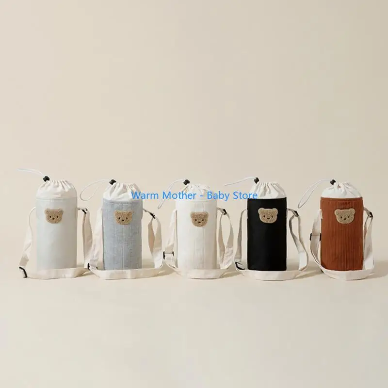 Portable Baby Bottle Carrying Case Storage Bag for Easy Feeding Water Cup Organiser with Lovely Bear Embroidery 57QE
