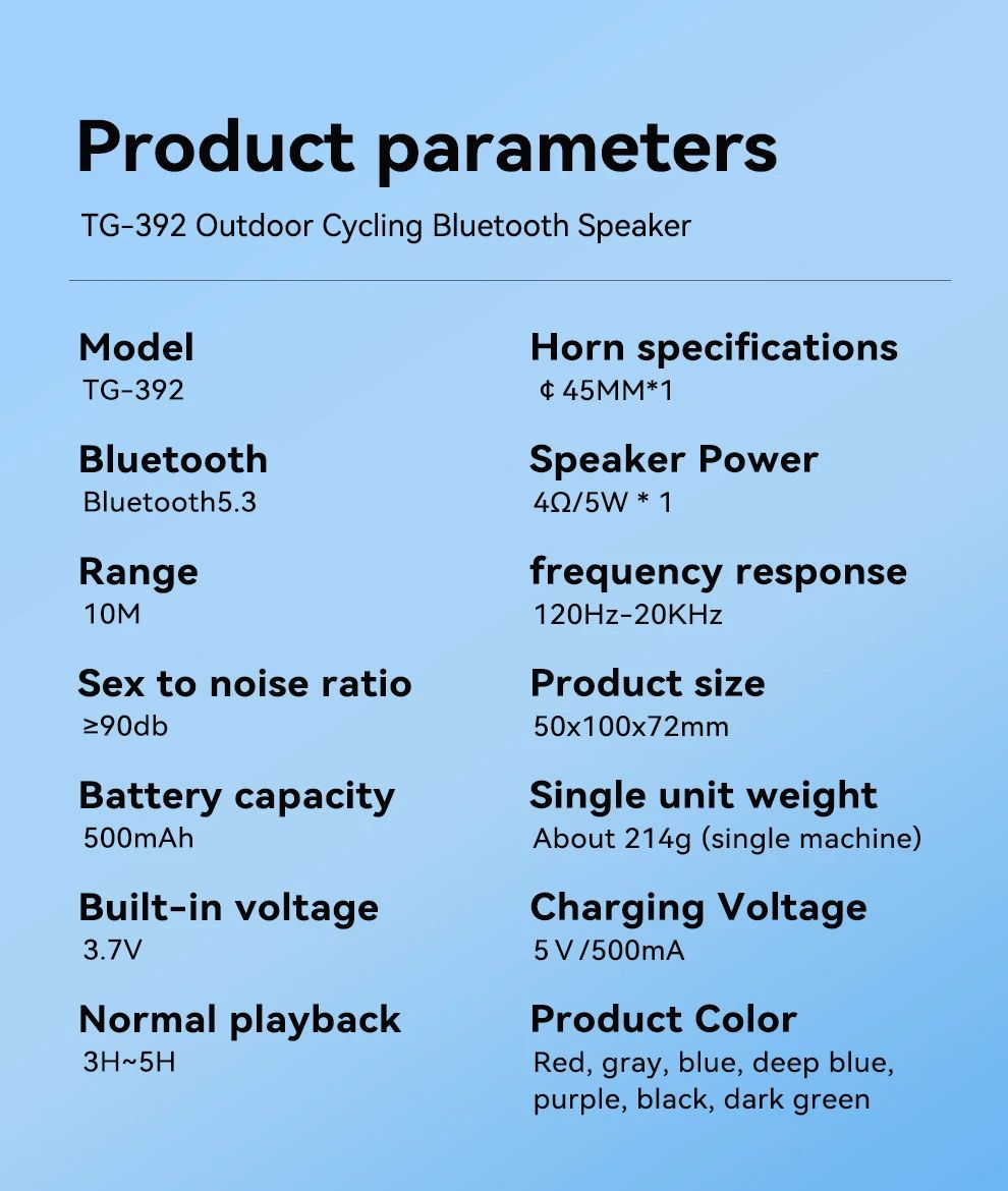 Weight[g]: TG392 Bicycle Bike Caixa De Som Bluetooth Speaker Portable Wireless FM