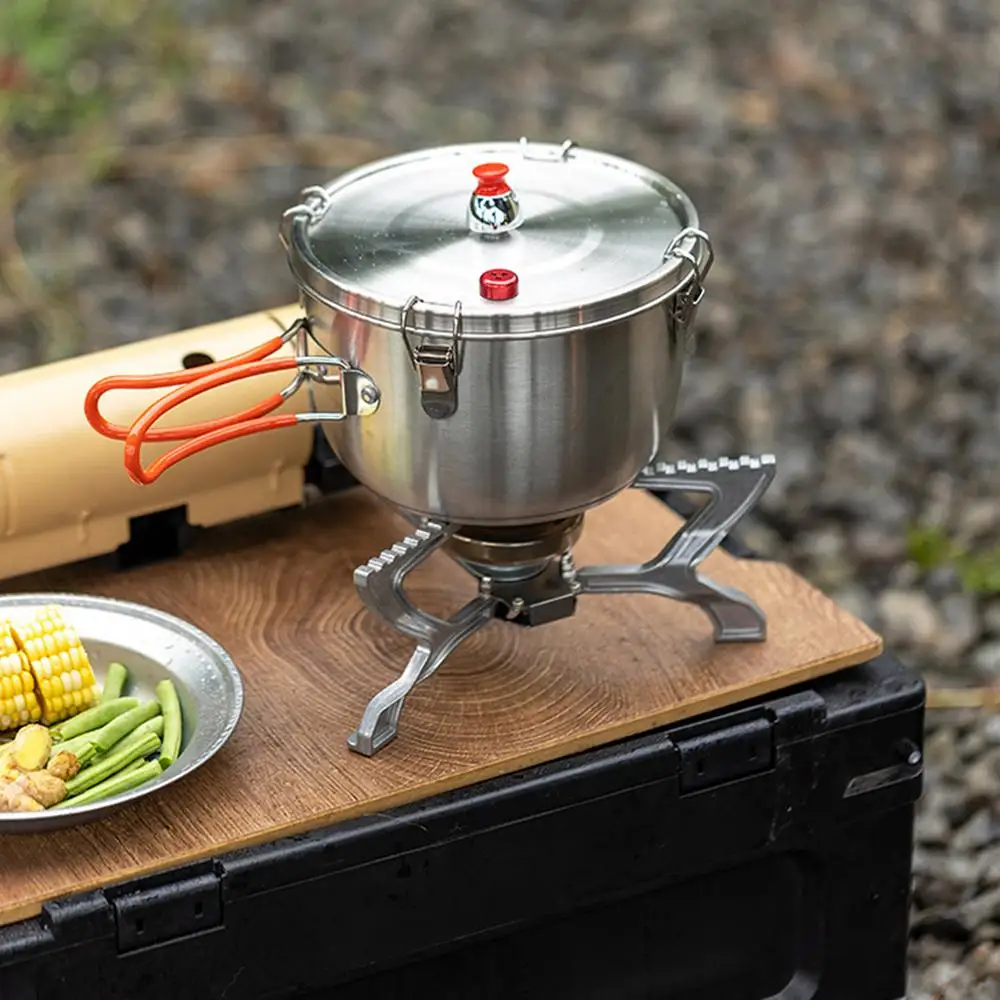 2.Portable Size: Enhance your outdoor cooking with our versatile pressure cooker. Its lightweight design and suitability for kitchen and camping use make it a great cooking companion, ensuring you can enjoy gourmet meals in the great outdoors