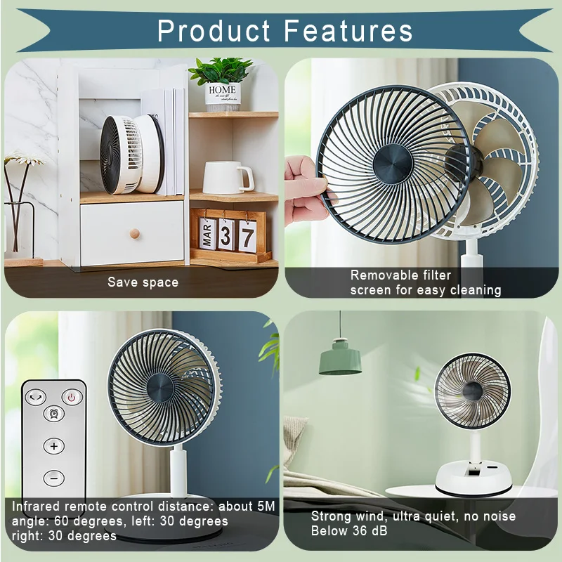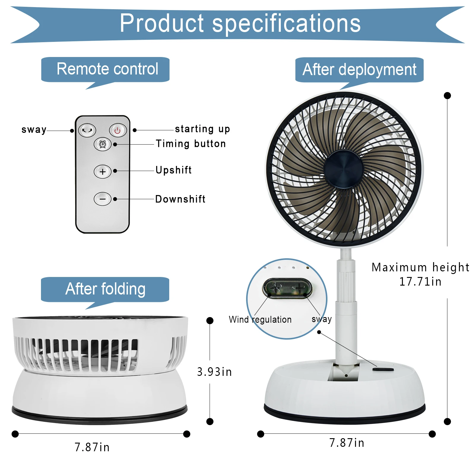 Portable Foldable Standing Fan 7200mAh high-capacity Remote control bedroom office outdoor camping USB charging fan