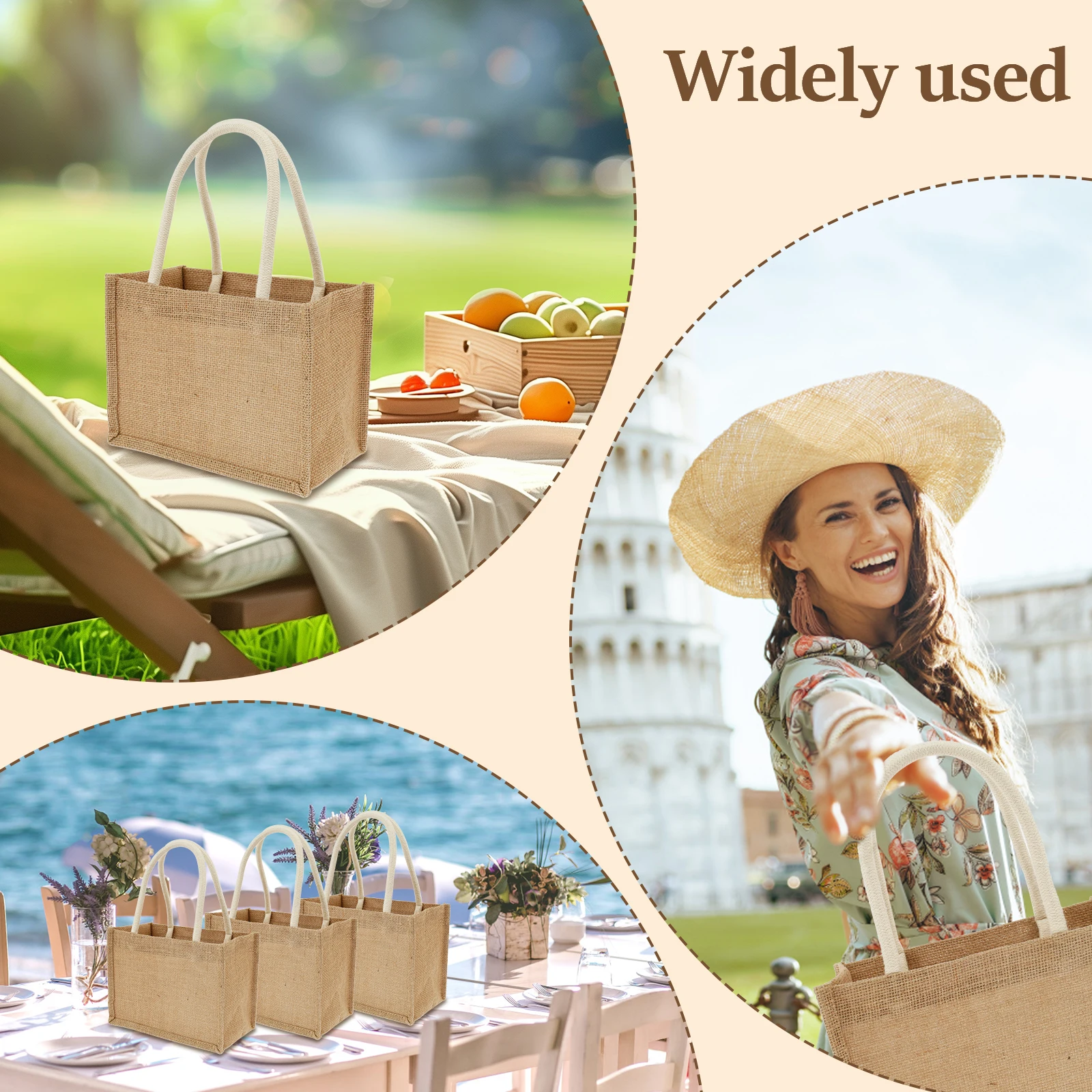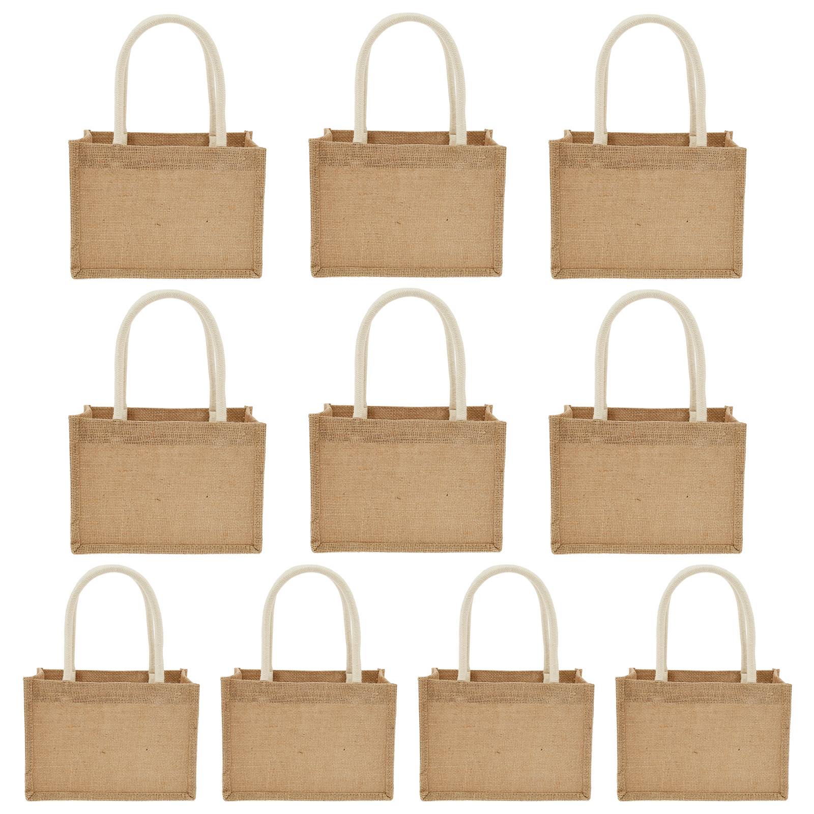 Portable Jute Tote Bag Burlap Tote Bags Mini Burlap Beach Bags Multipurpose Burlap Hand Bags for Shopping Trips Beach School