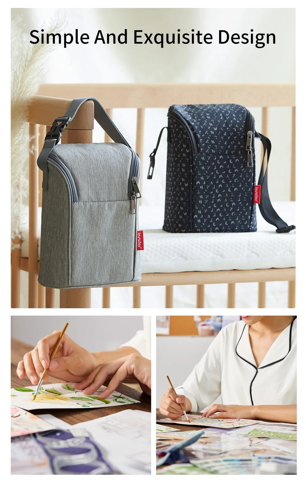 Portable Mother Feeding Bottle Bag Heat Insulation Lunch Bags Leak-proof Breast Milk Cooler Bag with Stroller Hanging Design