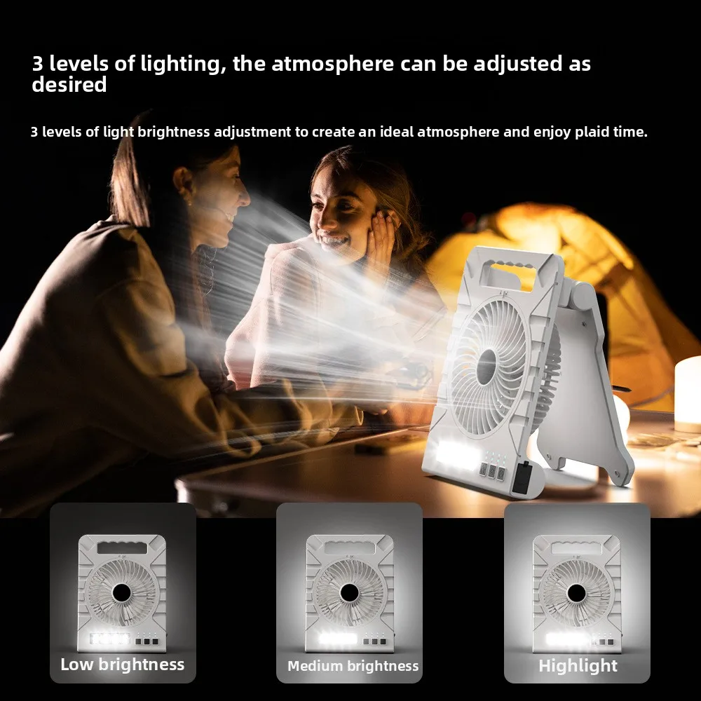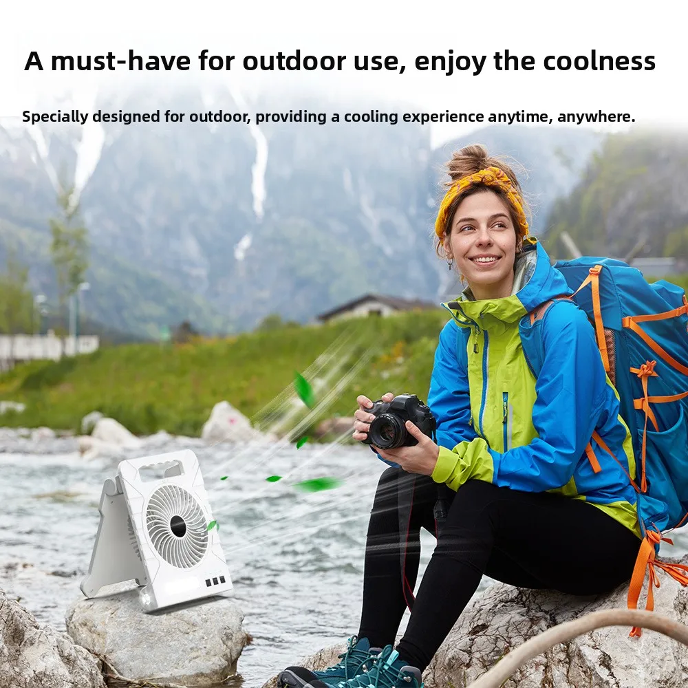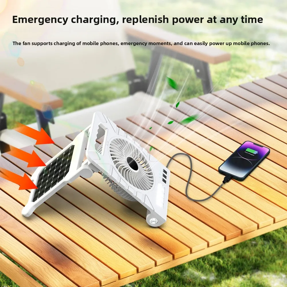 Powered Camping Solar Fan - Portable Rechargeable Handheld Fan with LED Light, Power Bank for Outdoor, Fishing, and Wild Camping