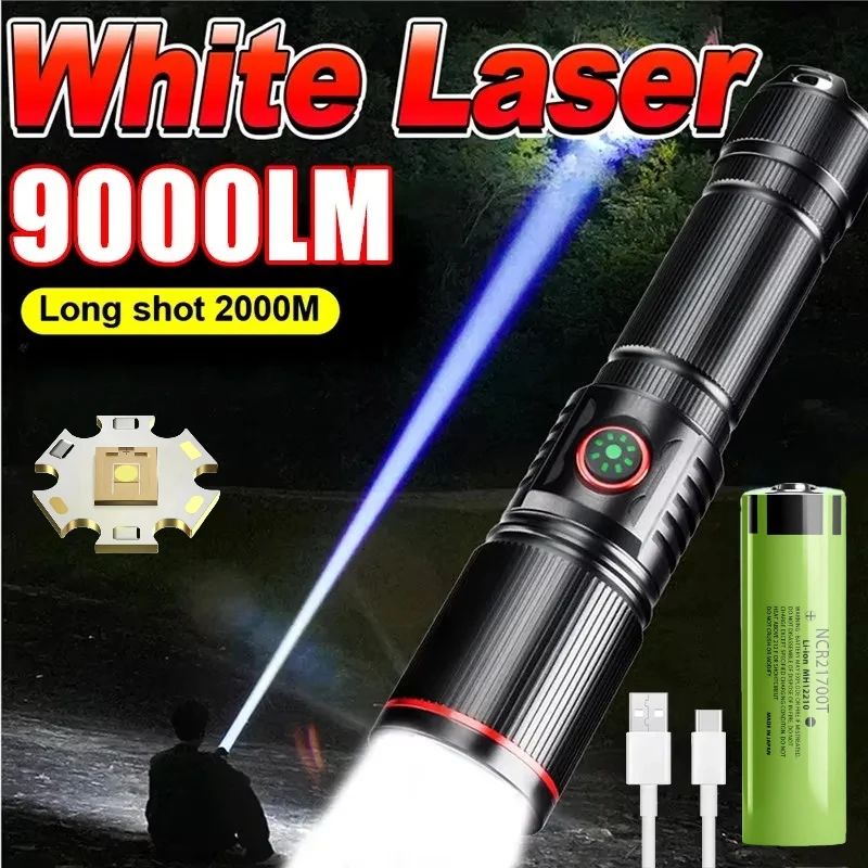 Powerful 30W White Laser Zoom Flashlight Use 18650 or 21700 Battery Rechargeable Torch Outdoor Hunting Emergency Lighting Lamp