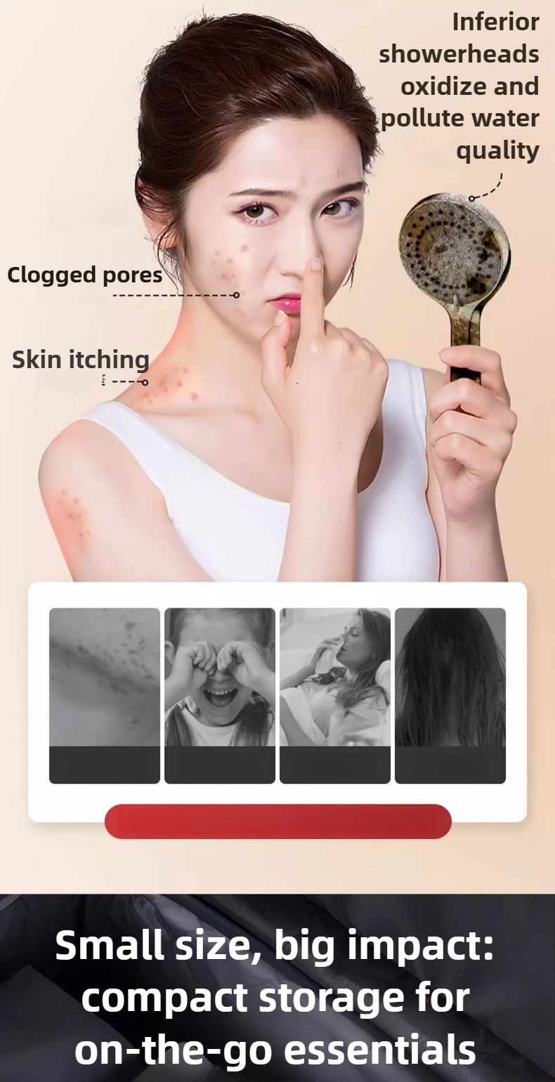 Pressurized Filter Shower Head Water Purifying and Antibacterial Nozzle Portable Shower Head for Traveling Business Trips Hotel