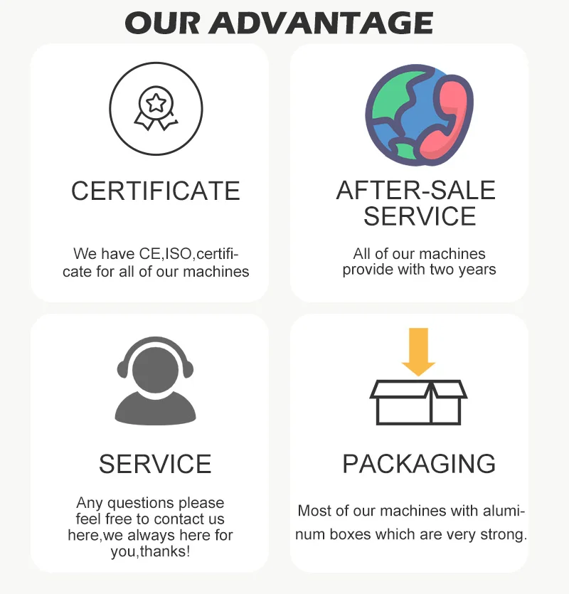 2. The machine comes with a 2-year warranty. We can provide manuals, operation videos, the EU CE certificate, and purchase invoices. Please contact me with your email address and I will send you the necessary documents.