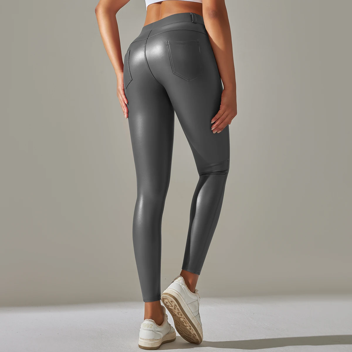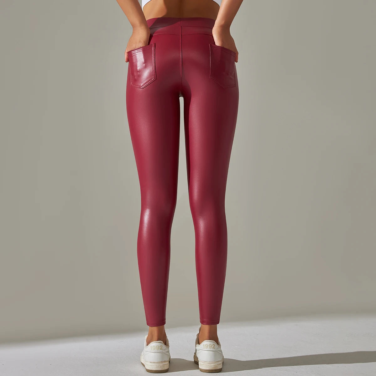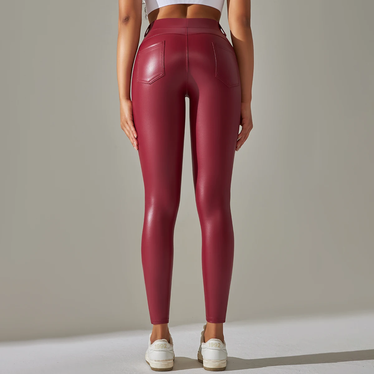 PU Leather Leggings Women Sexy Scrunch Butt Leggings Girls Faux Leather Pants High Waist Push Up Casual Leggings 6 Color