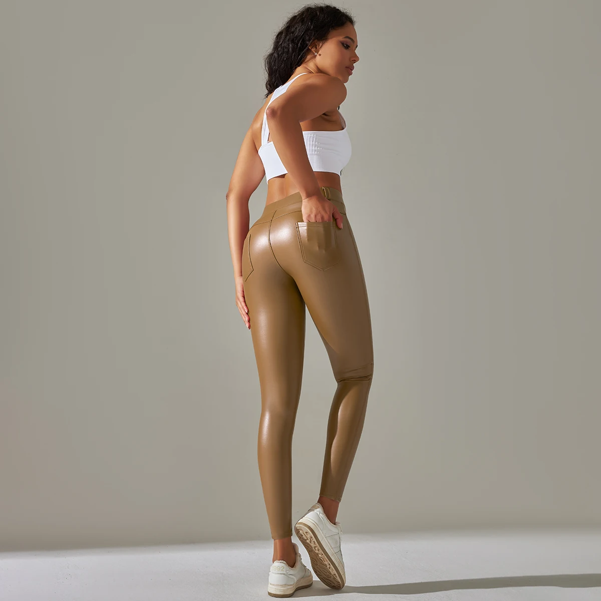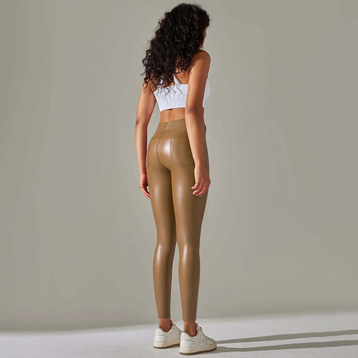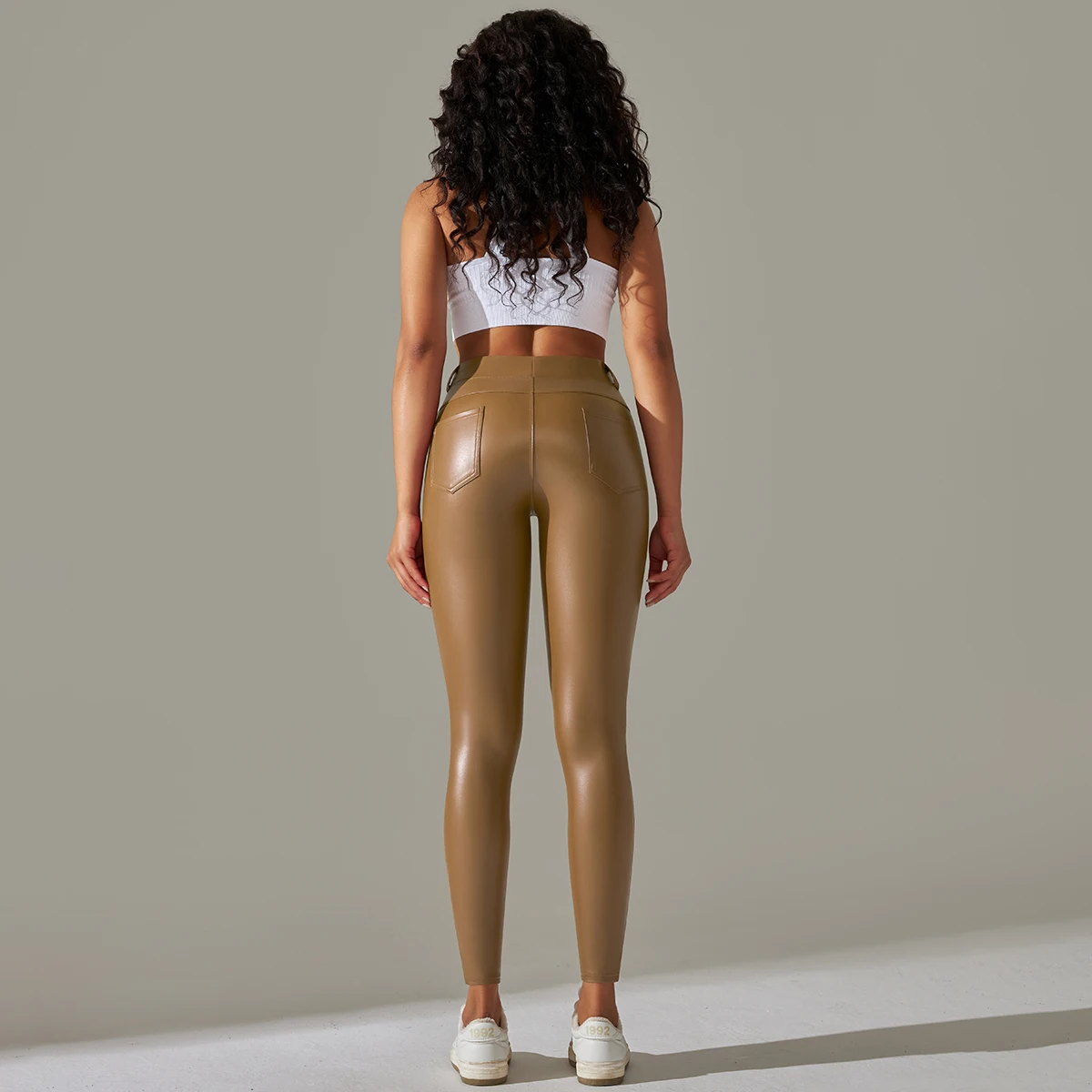 PU Leather Leggings Women Sexy Scrunch Butt Leggings Girls Faux Leather Pants High Waist Push Up Casual Leggings 6 Color