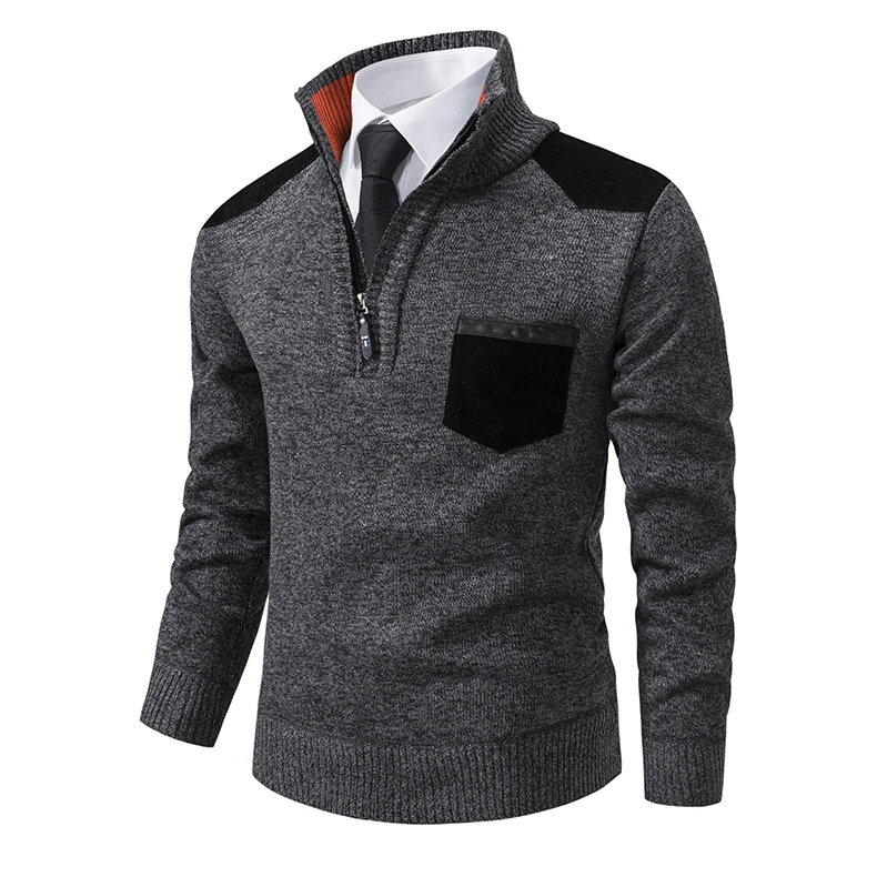 Pullover Men Sweater Cashmere Thick Polo Shirts Korean Half Zipper Cold Blouse Stand Collar Autumn Winter Outerwear Luxury Cloth