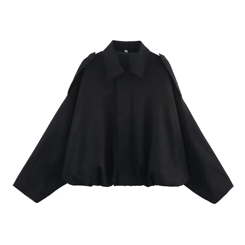 RAFZNB Women's Bomber Jackets Coats Fashion Turn-down Collar Long Sleeve Loose Coats Vintage Female Outerwear Chic Tops