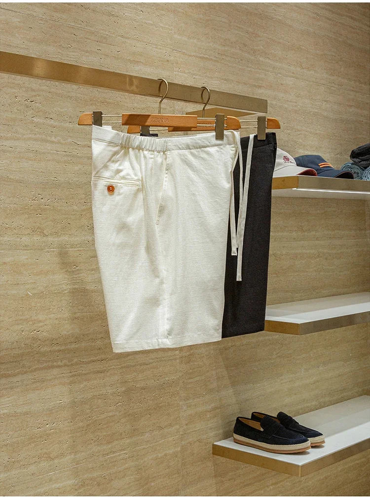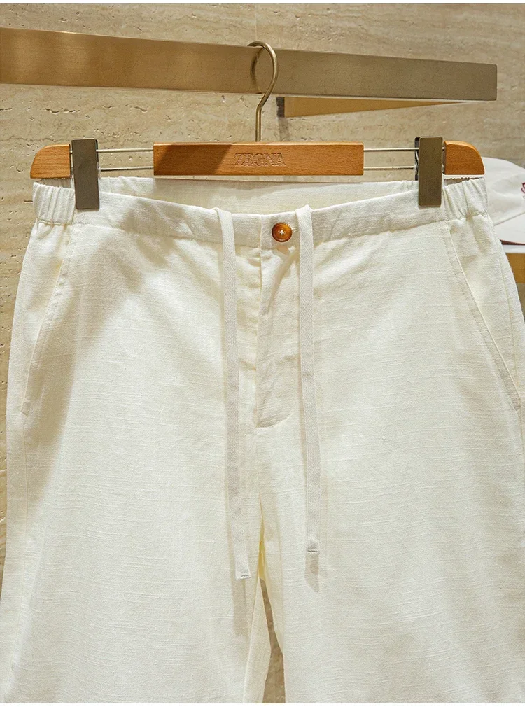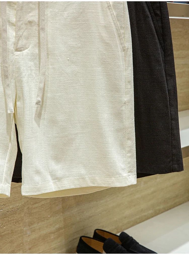 Ramie cotton blend comfortable and breathable summer drawstring casual linen shorts