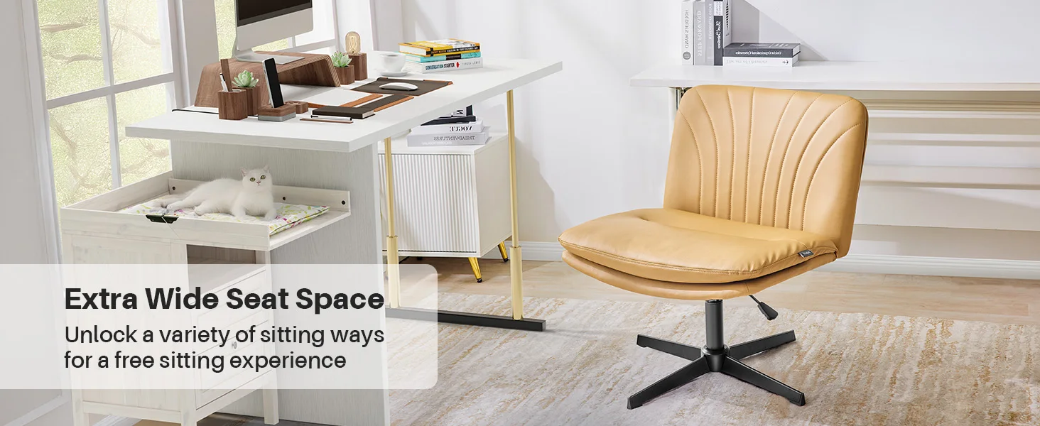 Redlife Criss Cross Chair with Rotating Adjustable Legs Office Chair Durable Pu Leather Wrapped Double Cushion for Home & Office