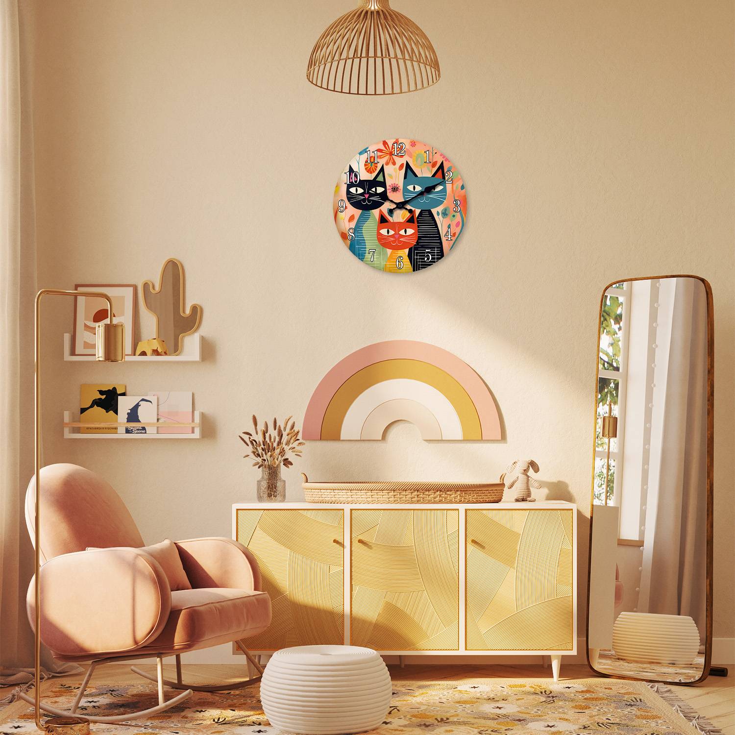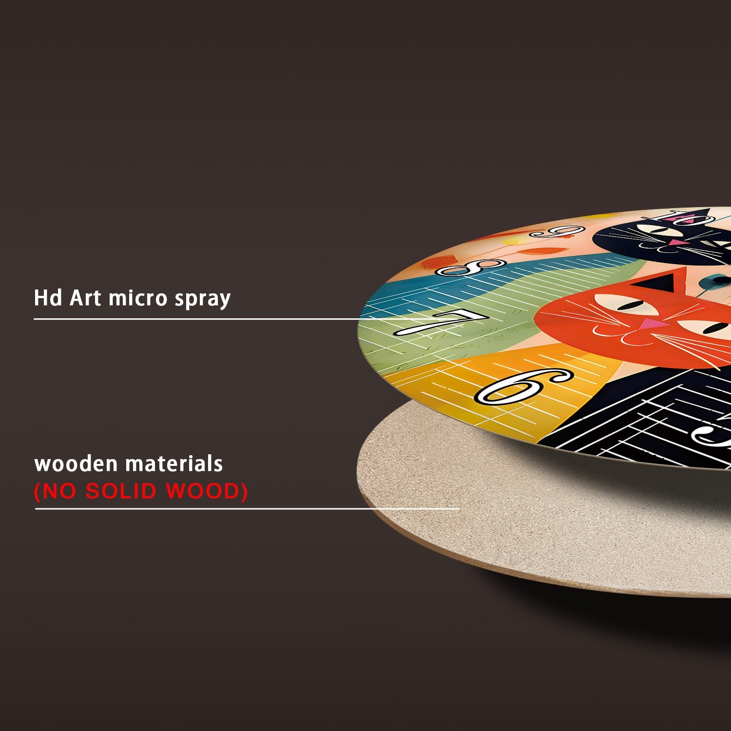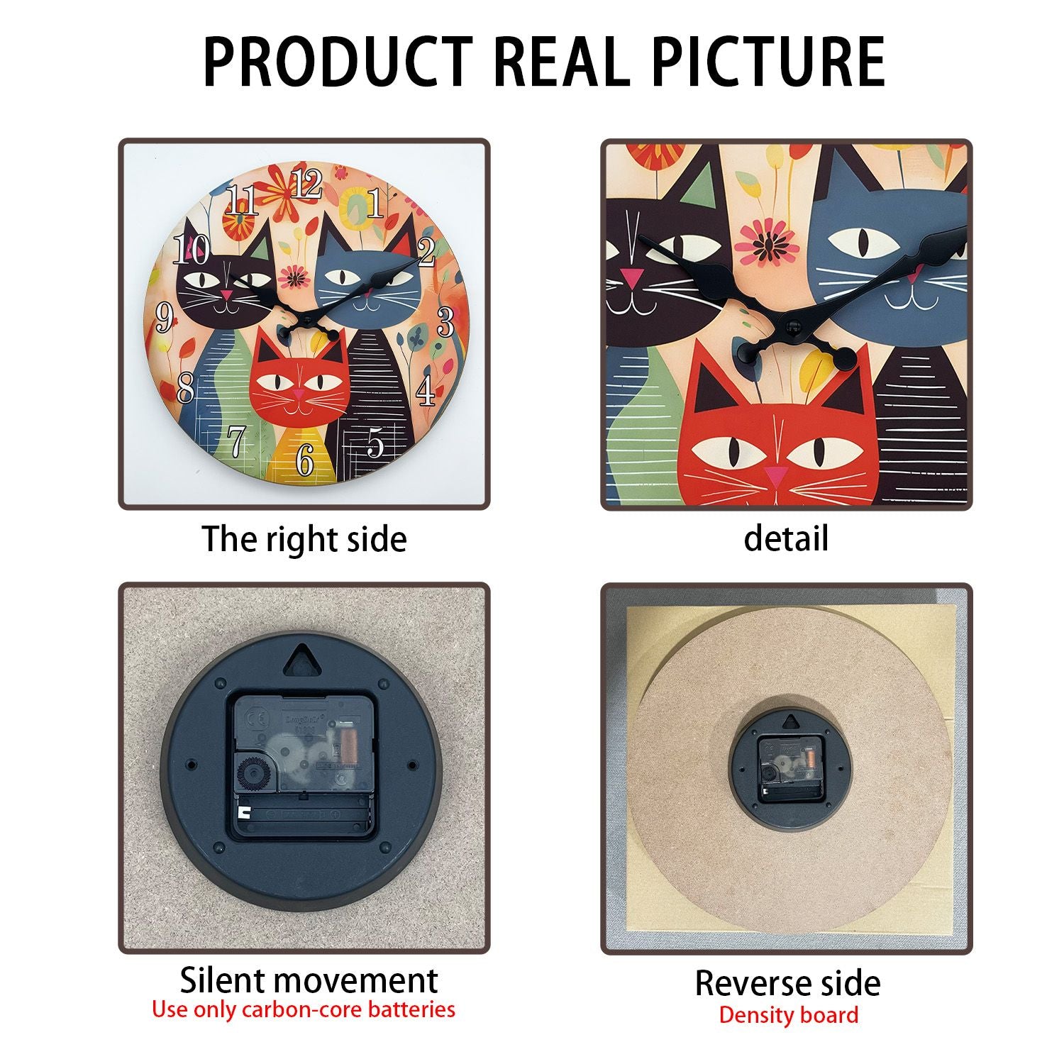 Retro Art Cute Cat Family Wooden Wall Clock Living Room Bedroom Kitchen Home Decoration Wall Clock Silent Quartz Clock Holiday Gift 10 Inch 12 Inch 14 Inch 16inch (No Battery)