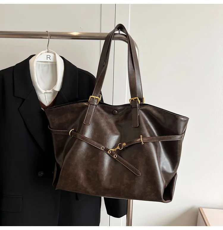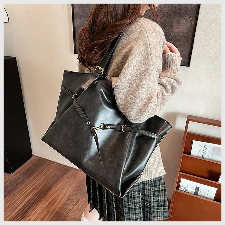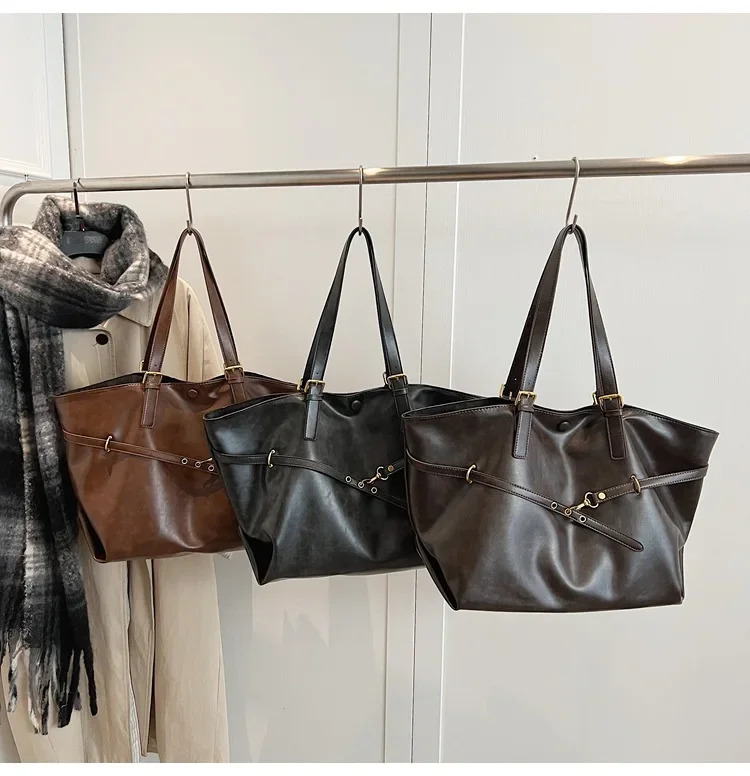 Retro Big PU Leather Shoulder Bag for Women 2025 Winter Trend New Y2K Fashion Handbags Females Travel Luxury Tote Bag bolsas