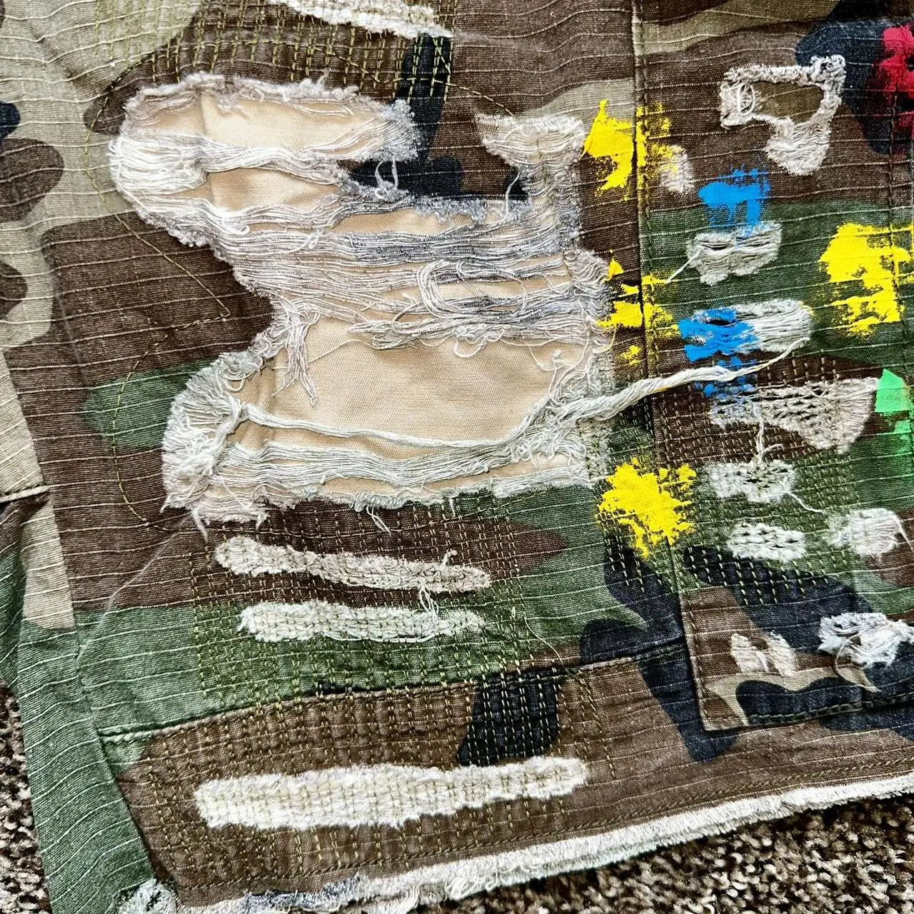Retro Camouflage Cargo Denim Shorts Y2K Jeans Mens Pocket Embroidery Baggy Shorts Low Waist Over The Knee Pants Casual Shorts