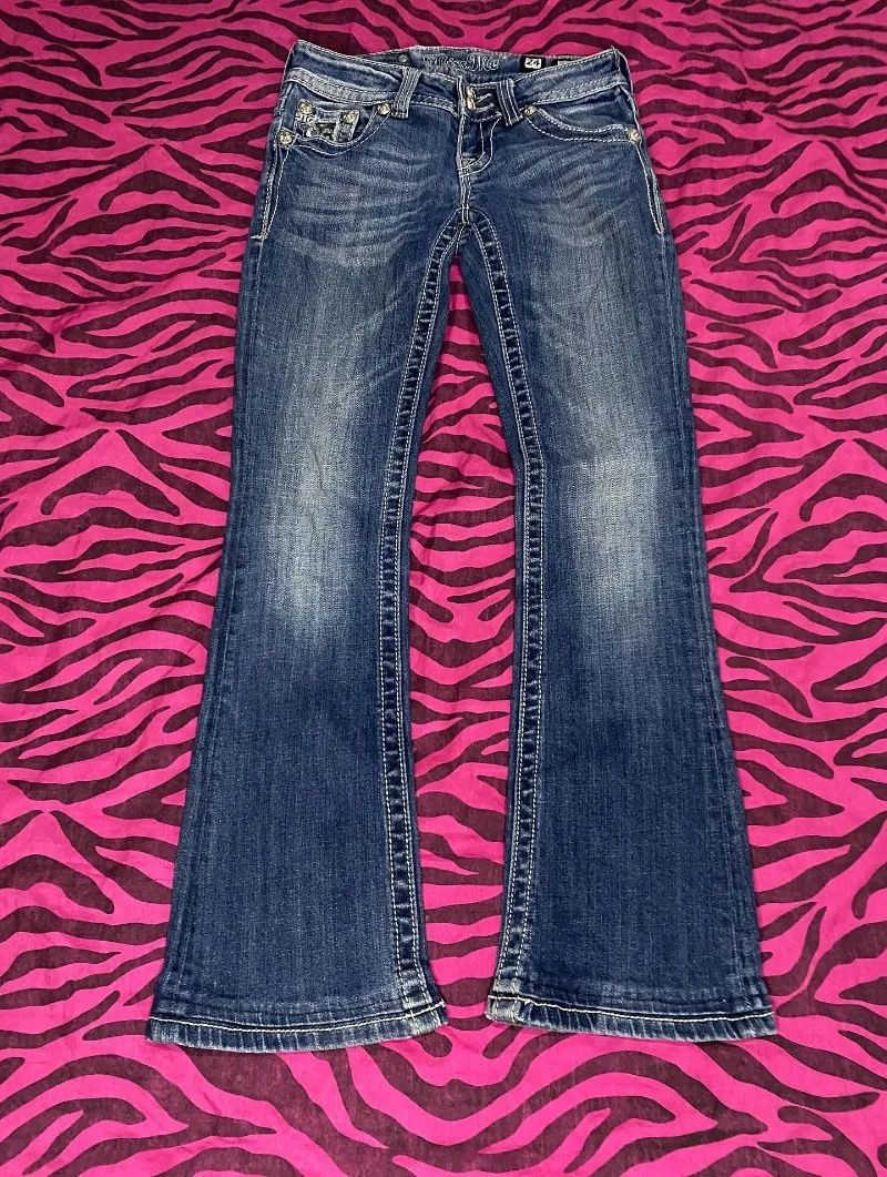 Retro Miss Me Boot Cut Jeans Female Y2K New Blue Jeans Embroidered Wing Pocket Hip Hop Harajuku Gothic Wide Pants Street Wear