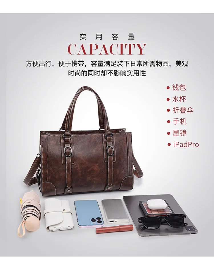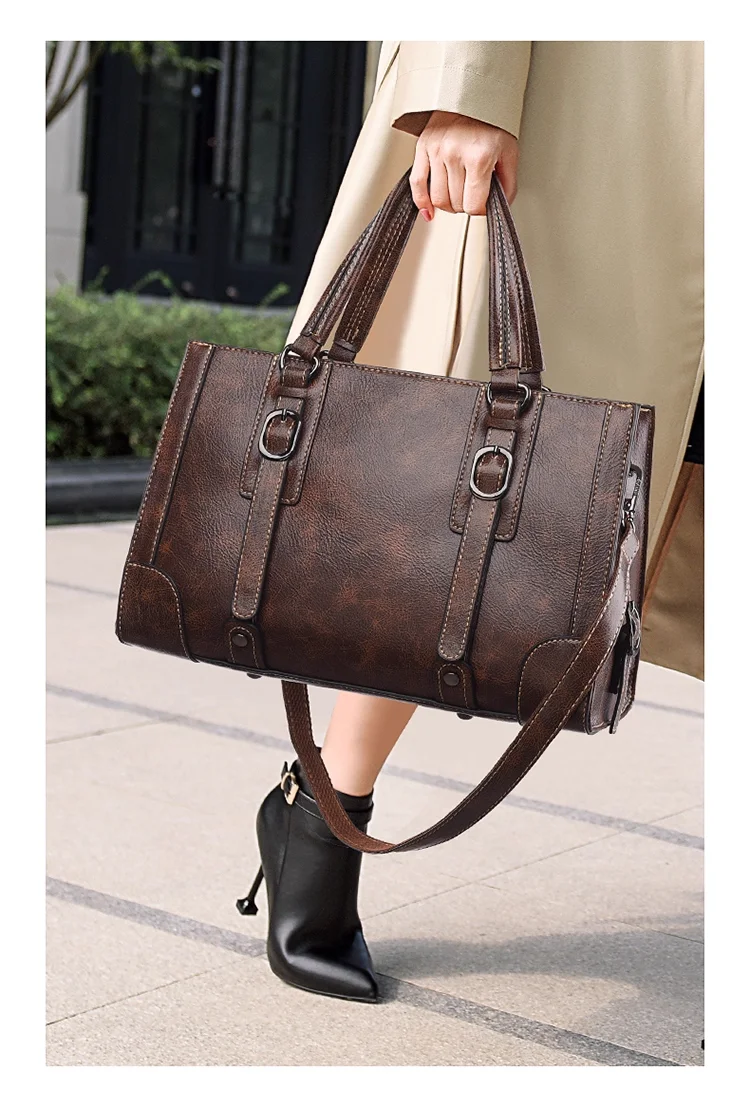 retro style women's handbag simple PU versatile shoulder bag for women large-capacity tote bag lady commuting crossbody bag