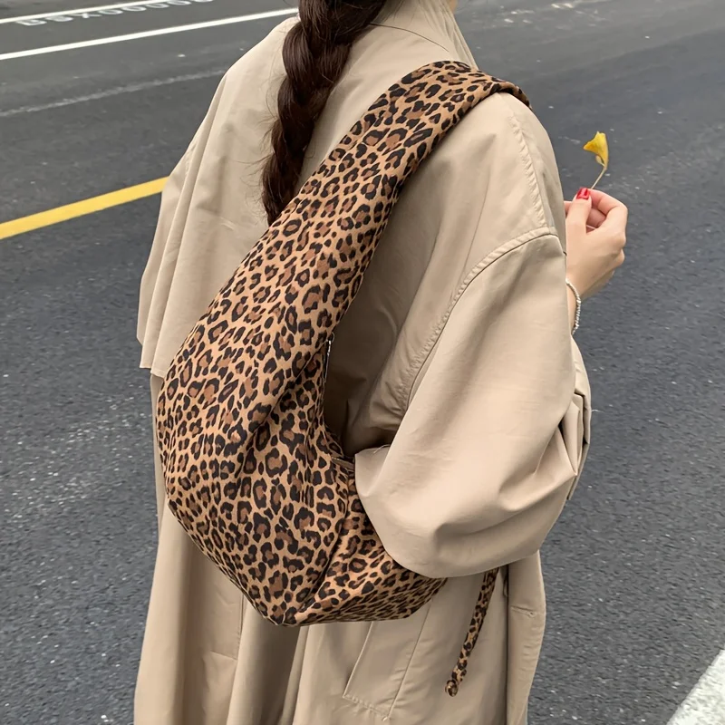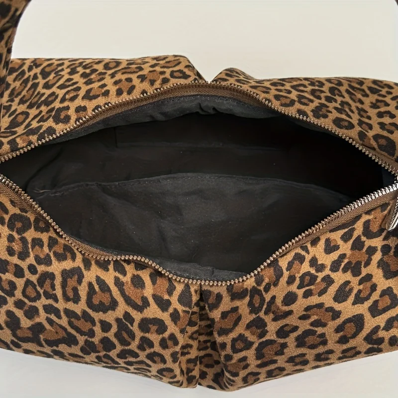 Retro suede leopard print saddle bag for women, trendy autumn and winter fashion, underarm bag, large capacity handbag