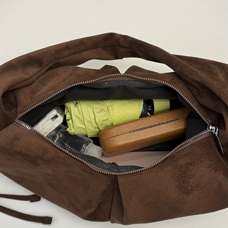 Retro Suede Leopard Print Saddle Bag for Women, Trendy Autumn and Winter Fashion, Underarm Bag, Large Capacity Handbag