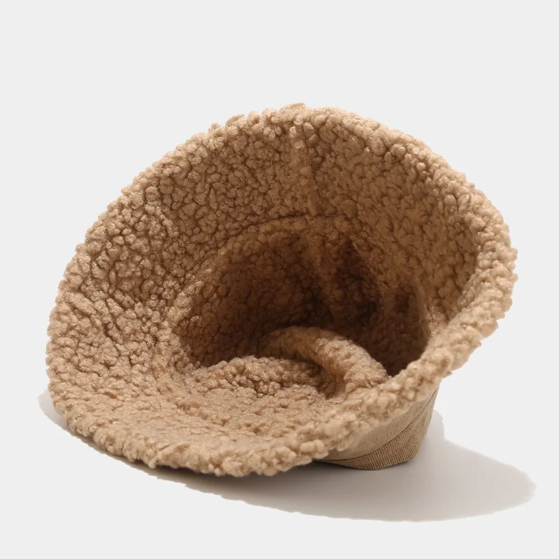 Reversible Faux Fur Bucket Hat Women Winter Lamb Wool Fleece Cap Corduroy Fisherman Hats Sunscreen Panama Caps