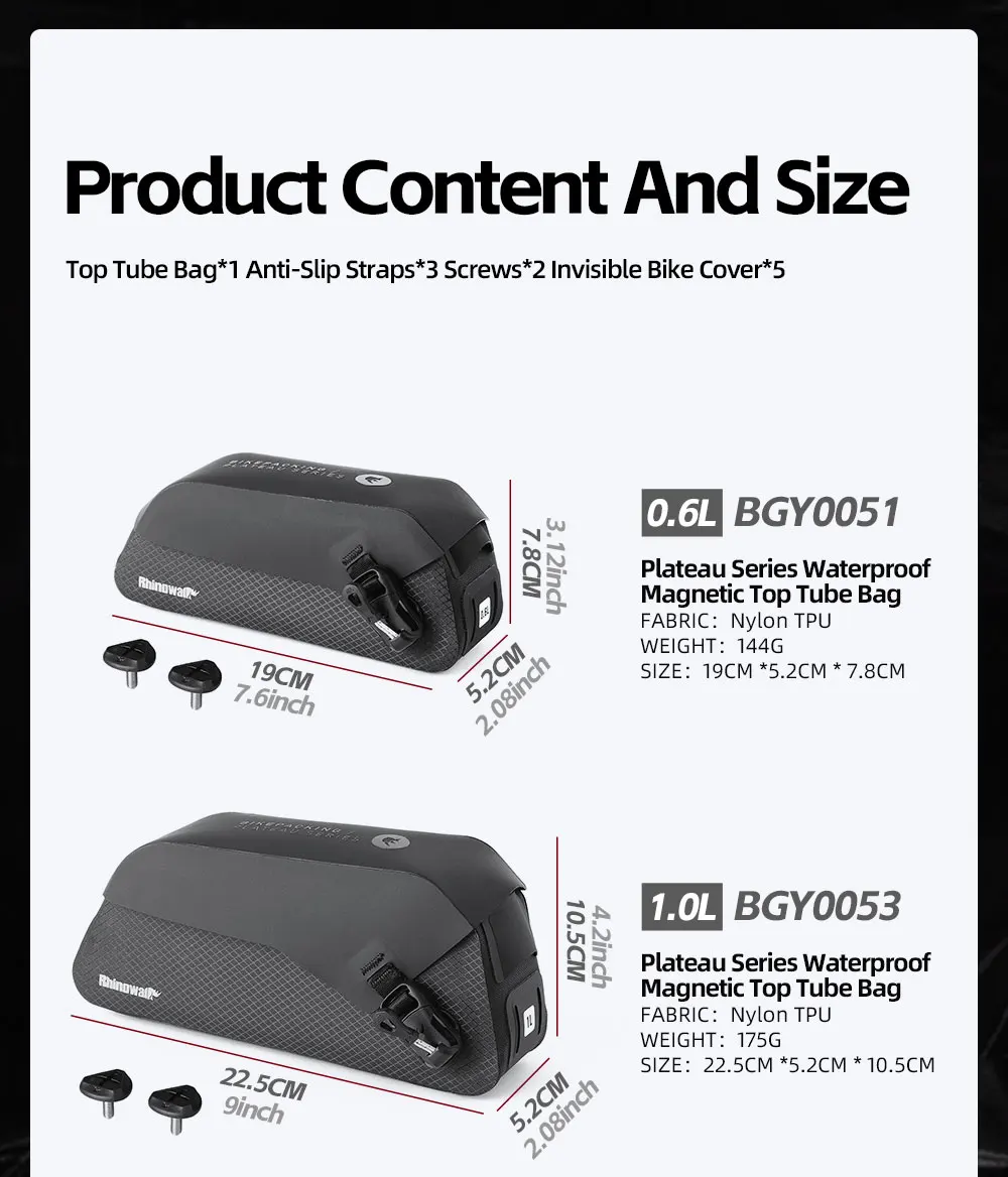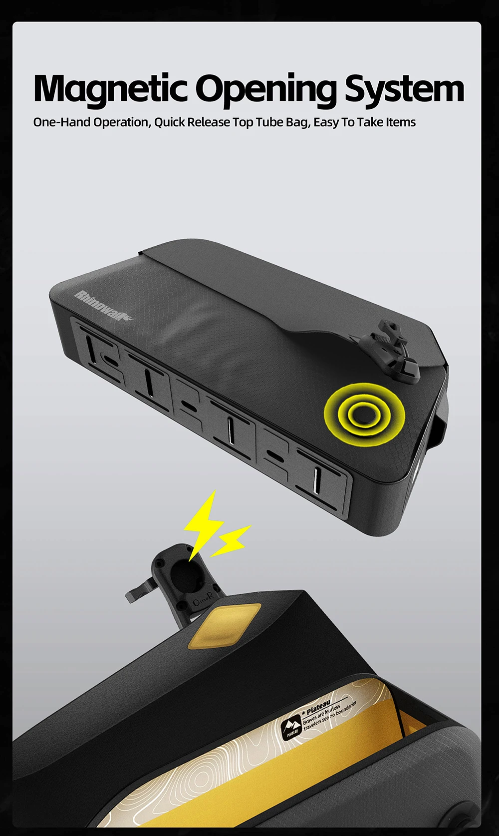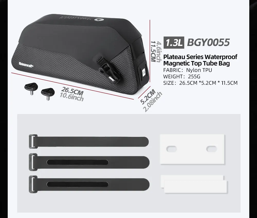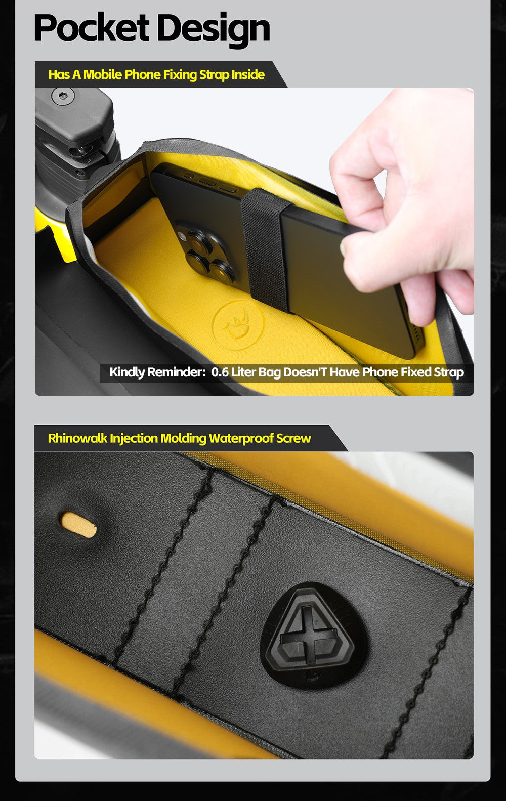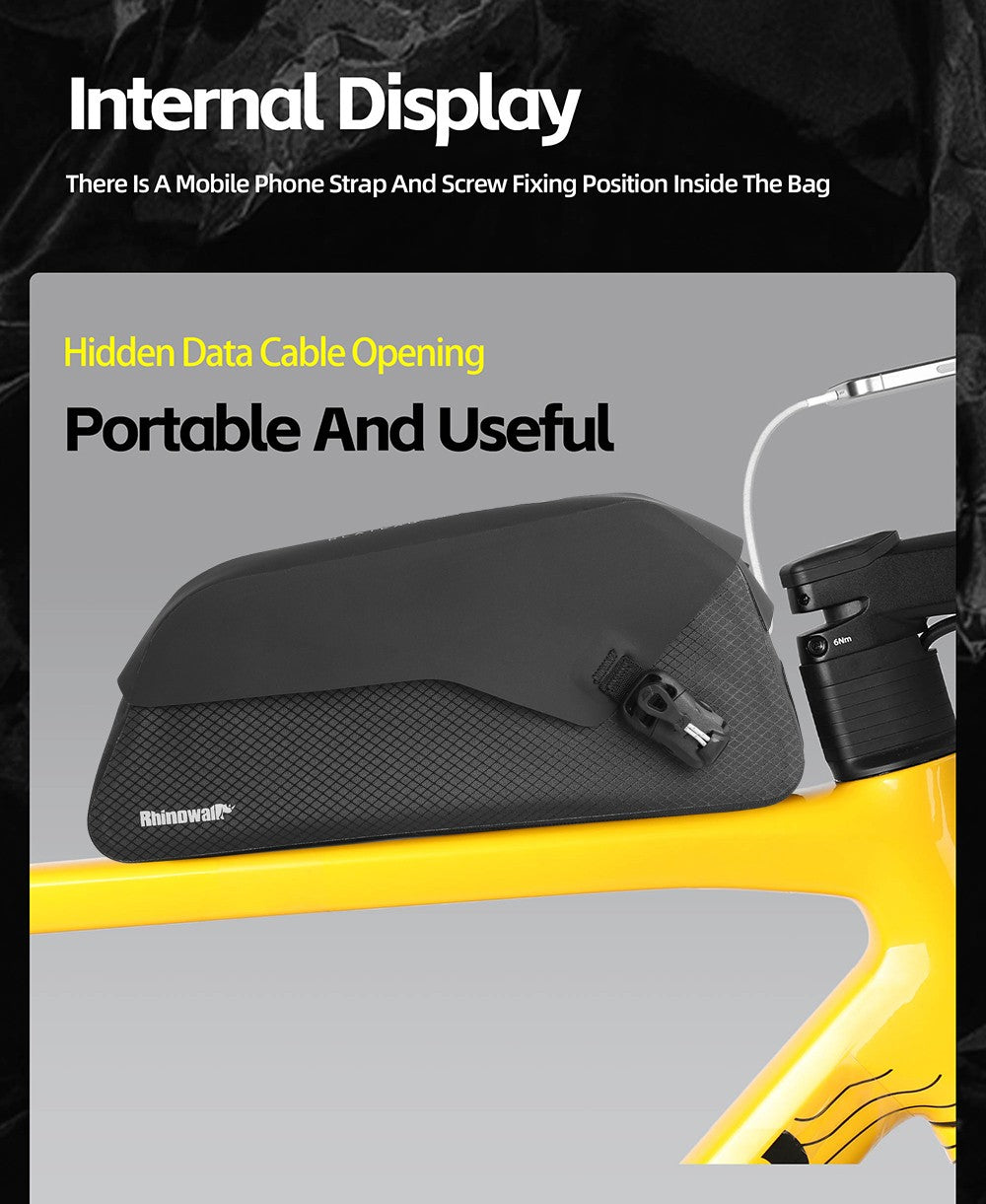 Rhinowalk Bicycle Top Tube Bag Waterproof Bike Front Frame Storage Bag Screw & Strap fixed Cycling Travel For MTB Road Gravel