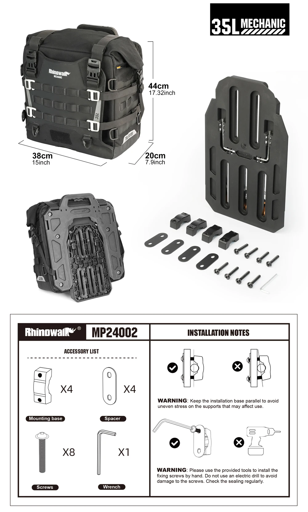 Rhinowalk Motorcycle Side Bag Quick Release Waterproof 35L Anti-Theft With Lock Hole For BMW R1300GS R1250GS R1200GS S1000XR