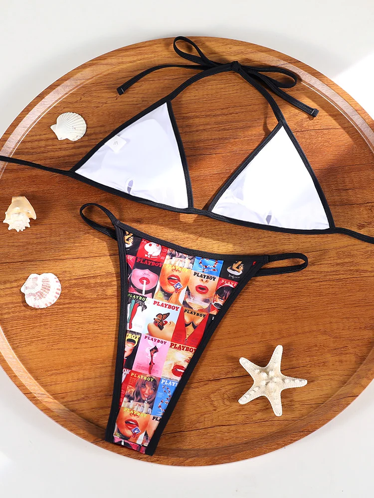 Rinabe Printed Bikini Set Triangle Bikinis Low Waist Swimsuit For Women Micro Thongs Bathing Suits 2025 Biquini Summer Beachwear