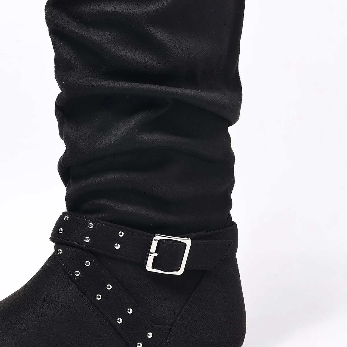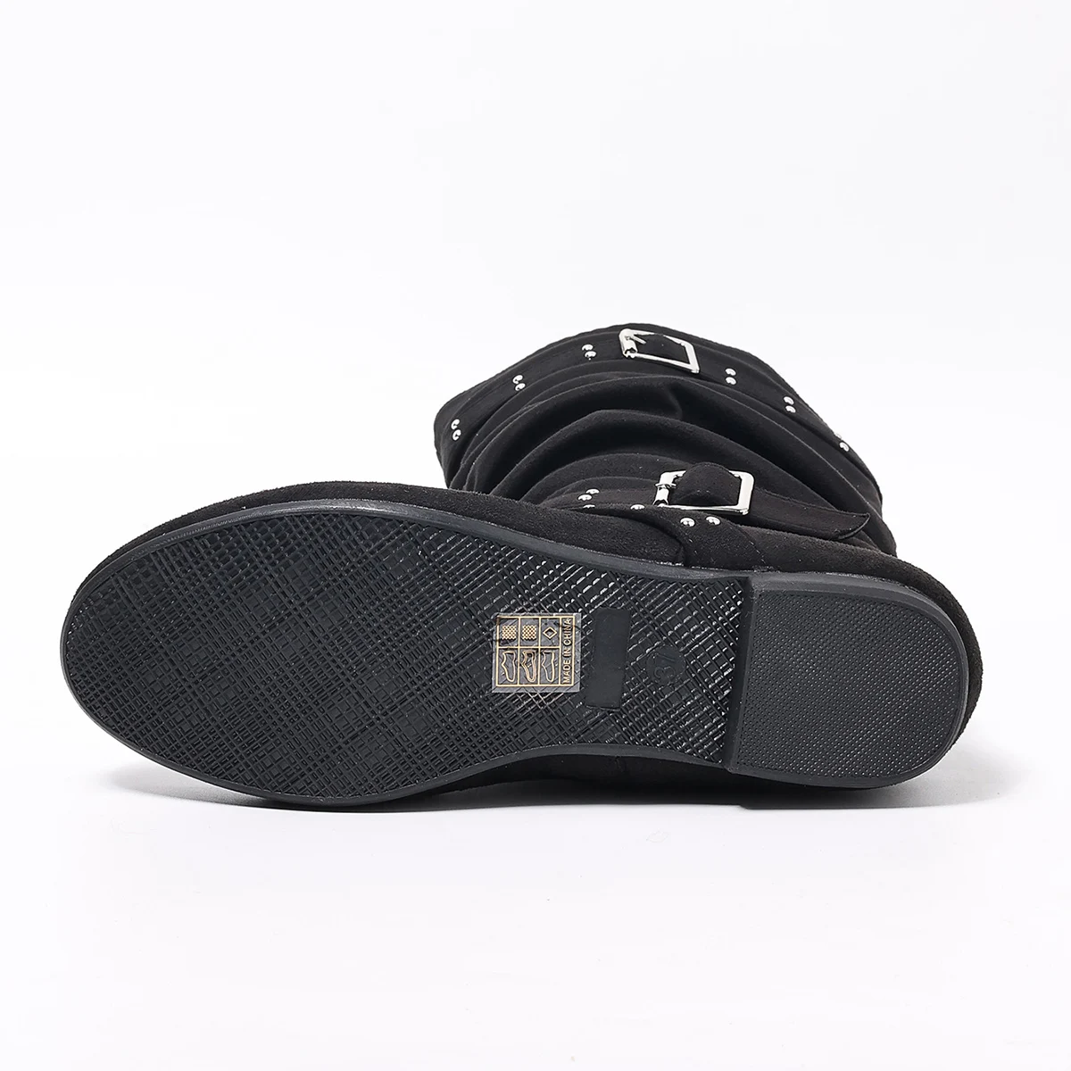 Rivet side zipper buckle flat bottom fashionable solid color comfortable European and American ladies youth mid-calf boots