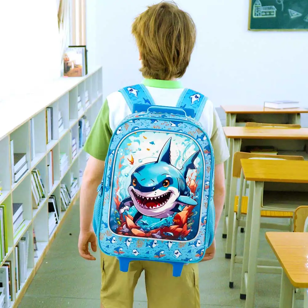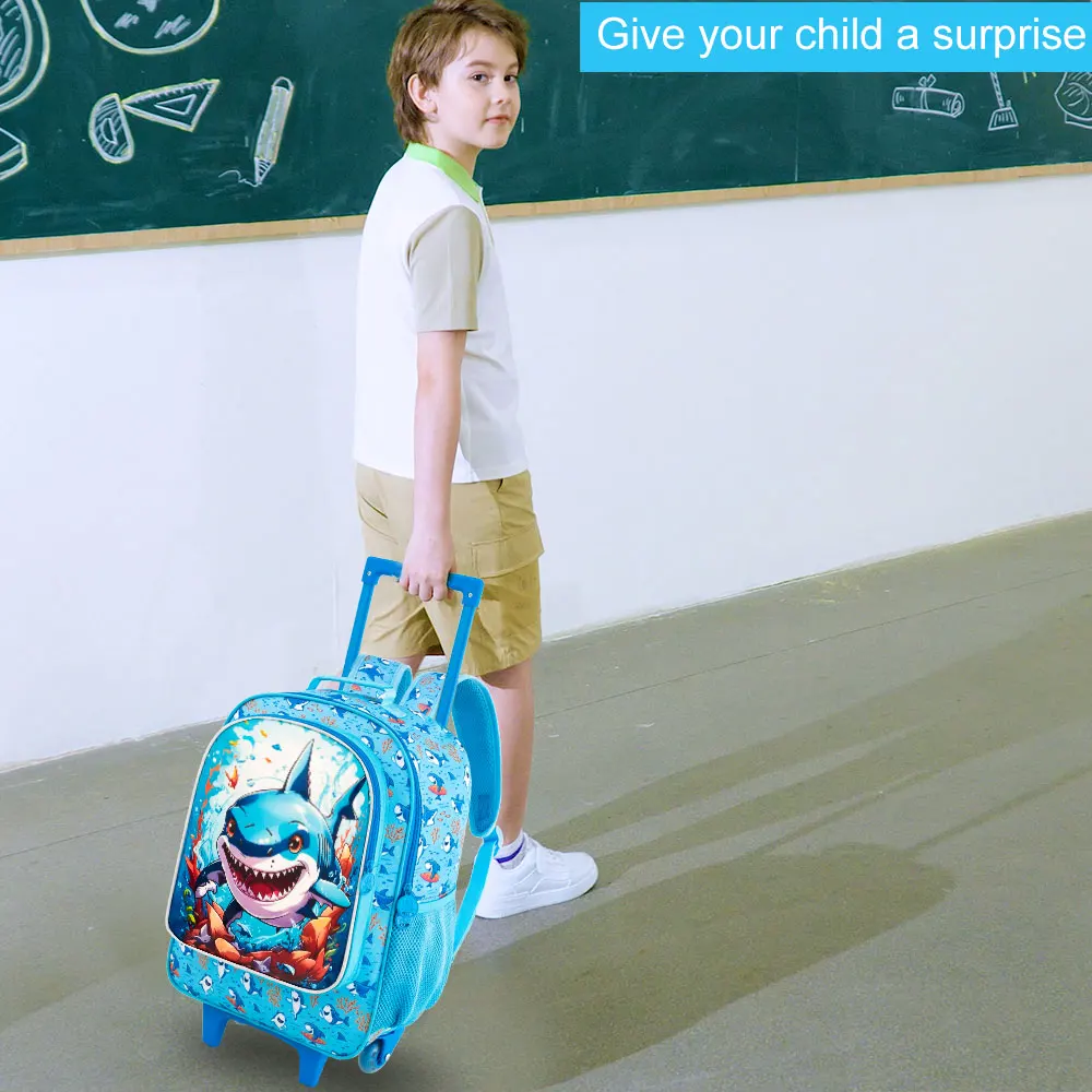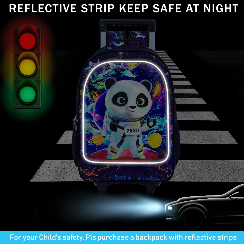 Rolling panda Backpack for Boys, Kids Roller Wheels School Bookbag with Lunch Bag, Wheeled School Bag for Children