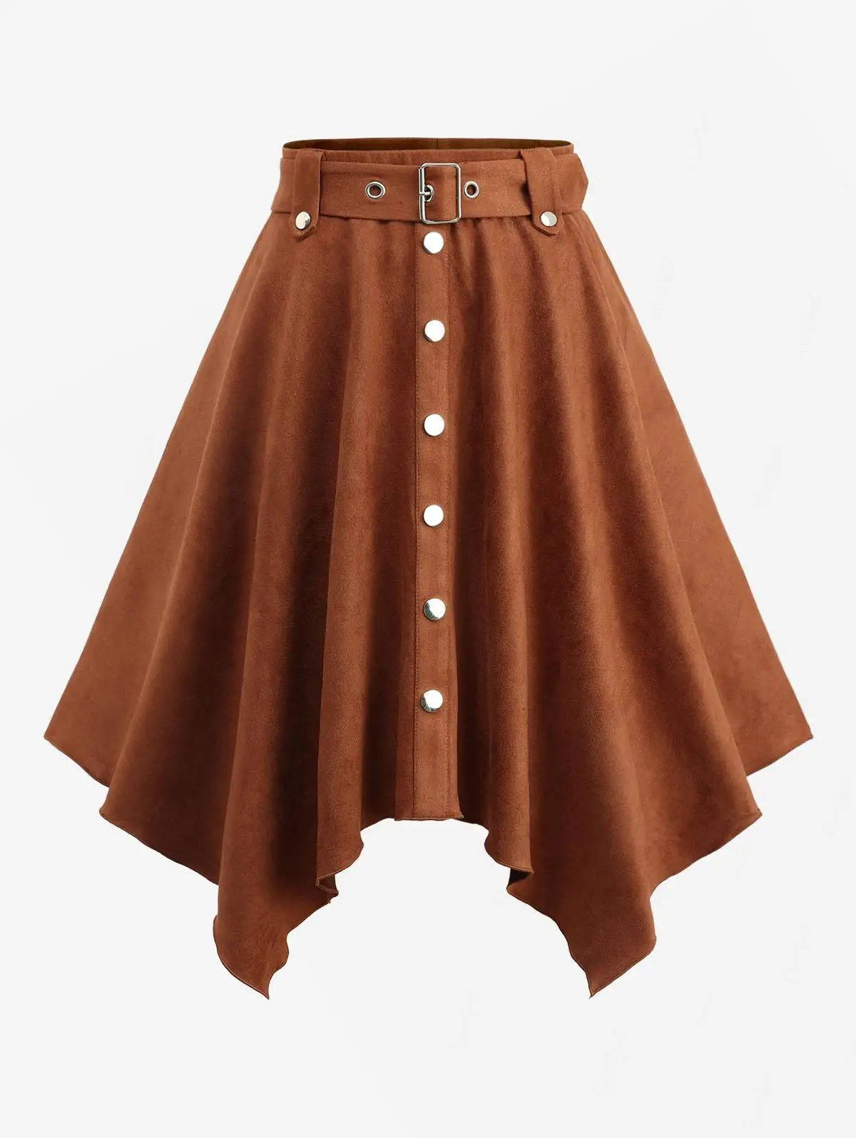 ROSEGAL Plus Size Asymmetric Skirt with Removable Belt Buttons Suede Handkerchief Top Women's Fashion Casual Skirts