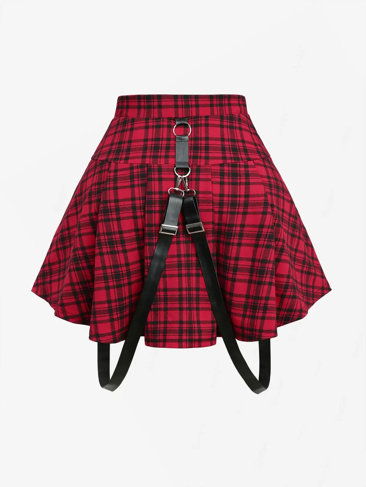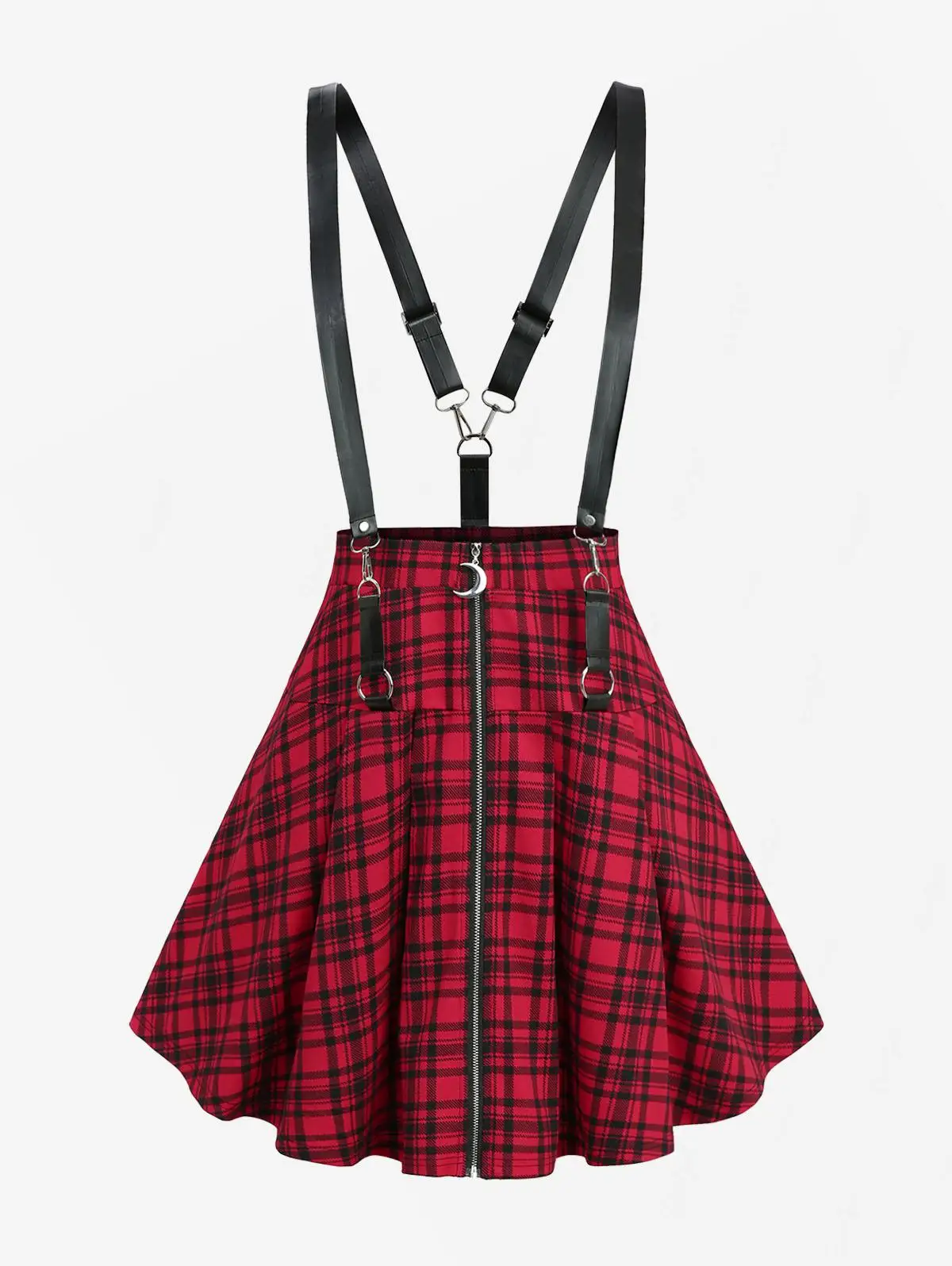ROSEGAL Plus Size Plaid Print Suspender Skirt Women's Unique Vintage Style Zip up Skirts