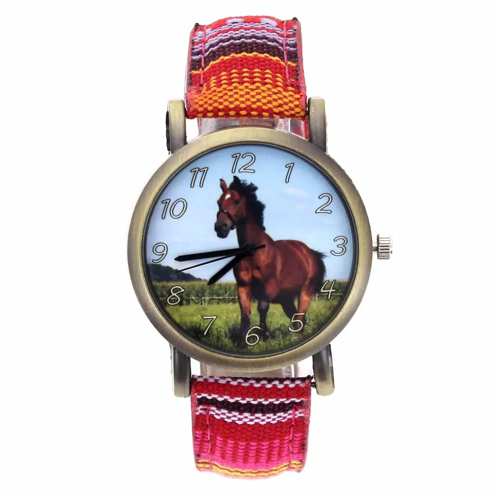 Running Horse Print Animal Unicorn Horses Fashion Men Women Stripes Denim Cloth Canvas Band Sport Quartz Watch