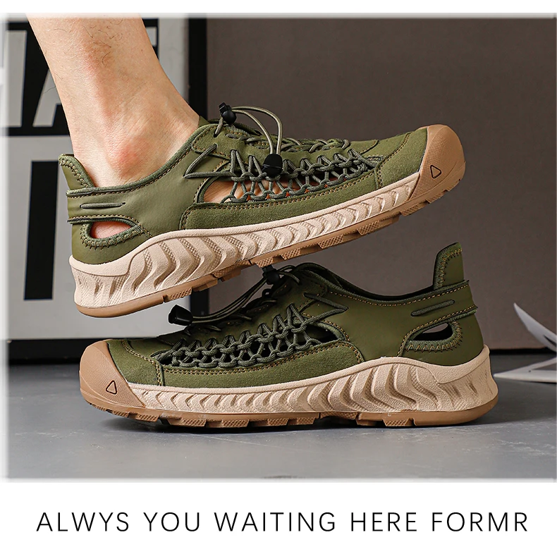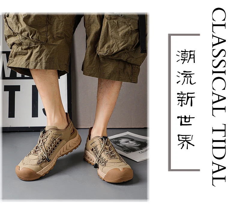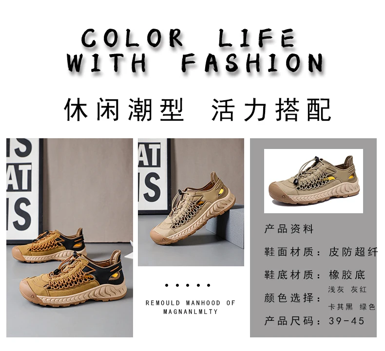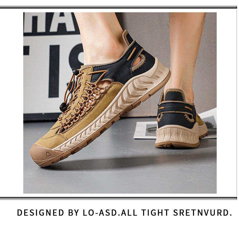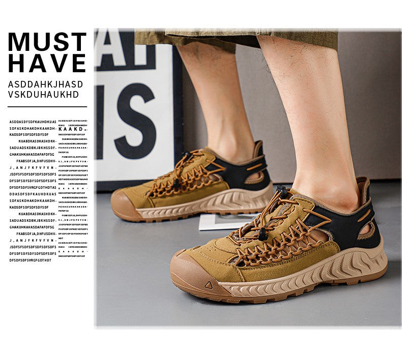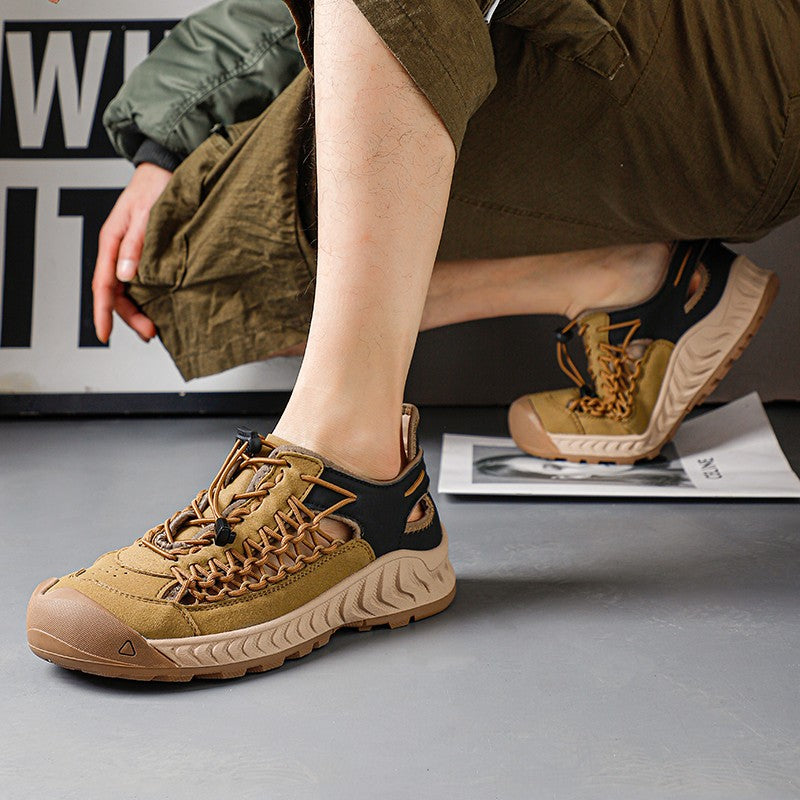 Sandals men's tide summer new style leather toe cap outdoor leisure sports hollow sandals beach shoes
