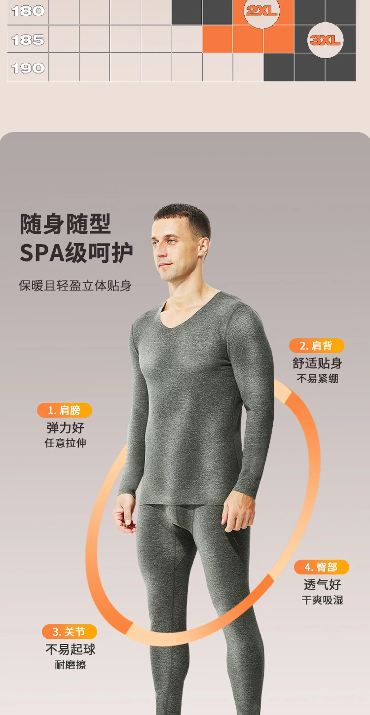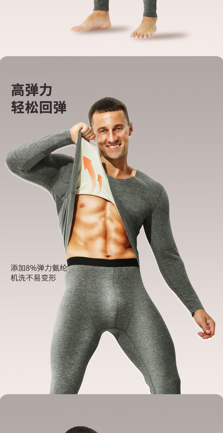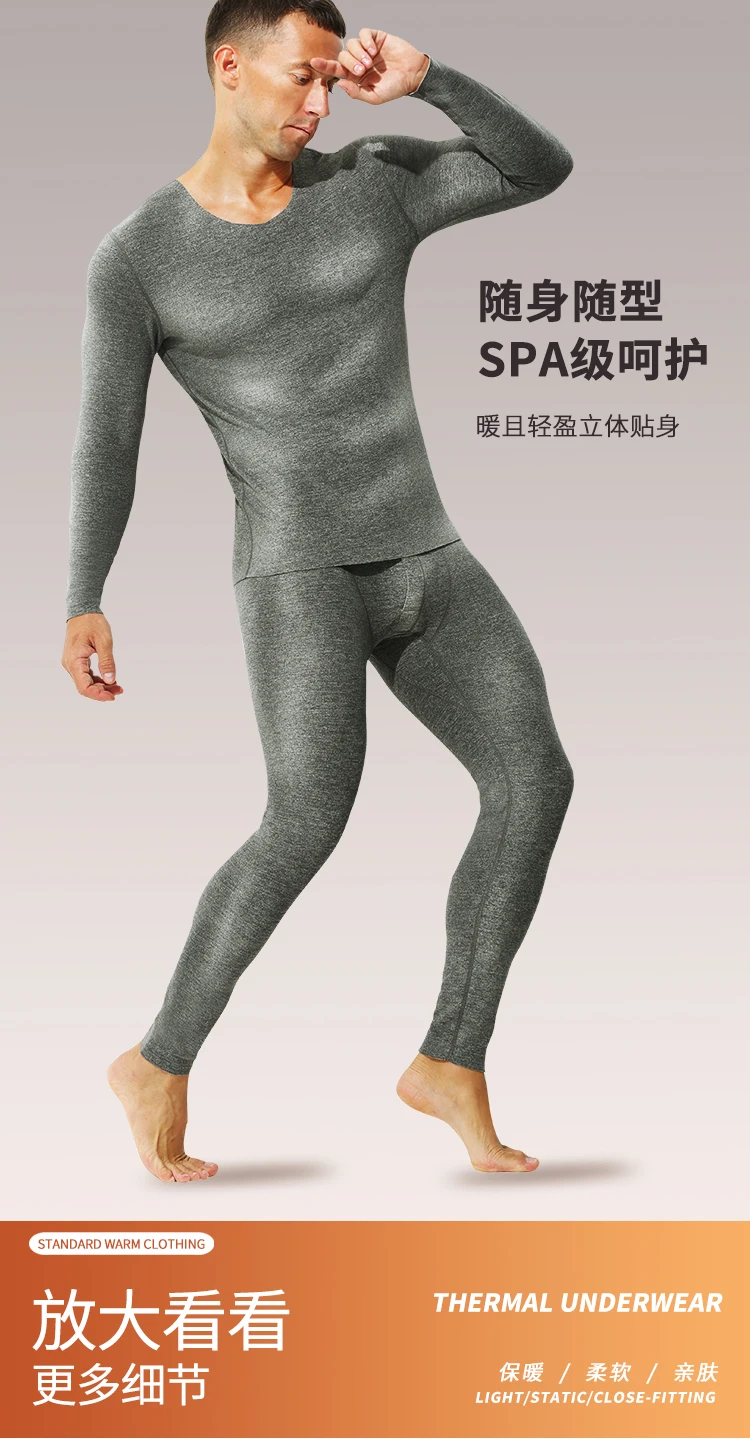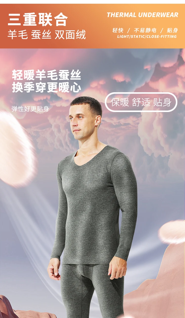 Seamless thermal underwear men's set V-neck thickened and fleece winter winter tight wool base long Johns