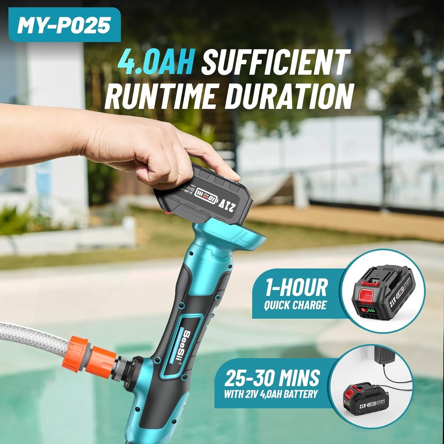 Seesii Cordless Stick Water Transfer Pump, With 4000mAh 21V Battery & Charger, 720GPH, 32FT Head, Handheld Portable Utility Sump Pump Kit with 3/4" Outlet for Pool/Garden/Pond/RV/Boat Draining