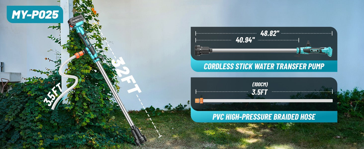 Seesii Cordless Stick Water Transfer Pump Handheld Portable Utility Sump Pump 3/4" Outlet for Pool/Garden/Pond/RV/Boat Draining