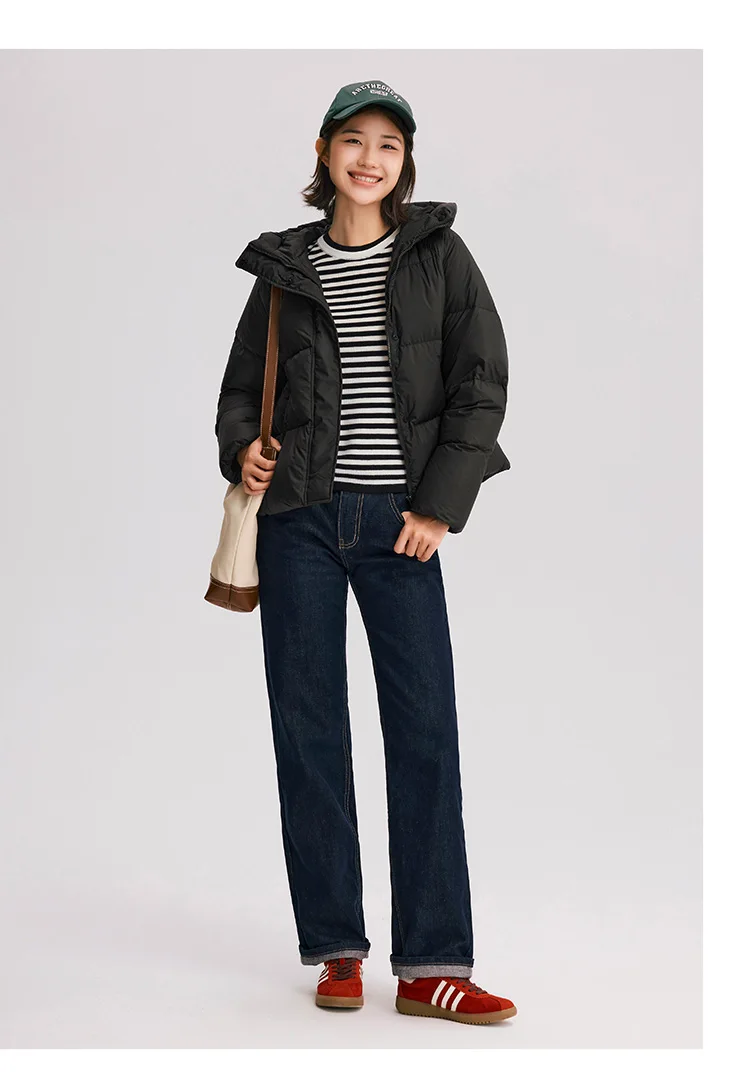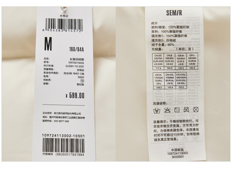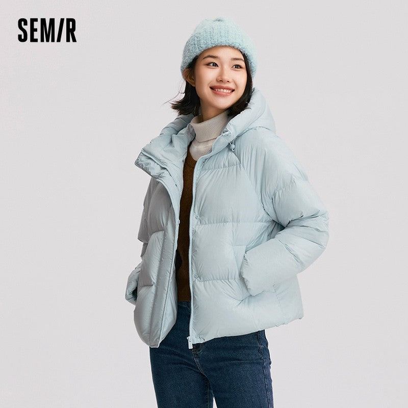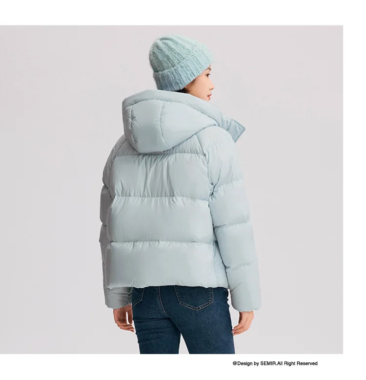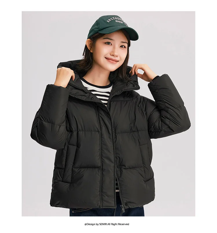 Semir Down Jacket Women Solid Color Loose Versatile 2024 Winter New Three-Proof Hooded Puffer Coat Down Jacket