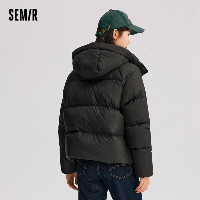Semir Down Jacket Women Solid Color Loose Versatile 2024 Winter New Three-Proof Hooded Puffer Coat Down Jacket