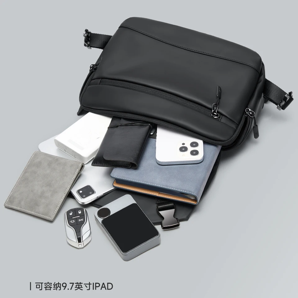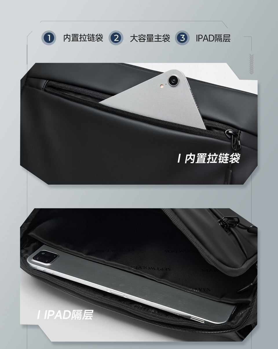 Septwolves Lightweight Men Shoulder Bag Leather Travel Messenger Bag 9.7-Inch Ipad Compartment Comfortable Widened Shoulder Pads