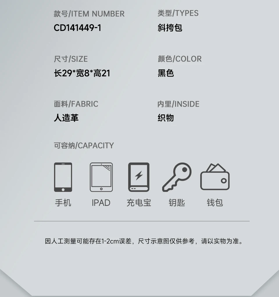 ✅It is equipped with a built-in main bag, a hidden zipper bag and a tablet compartment. It can hold a 9.7-inch iPad mini and has a large capacity to meet the daily travel storage needs