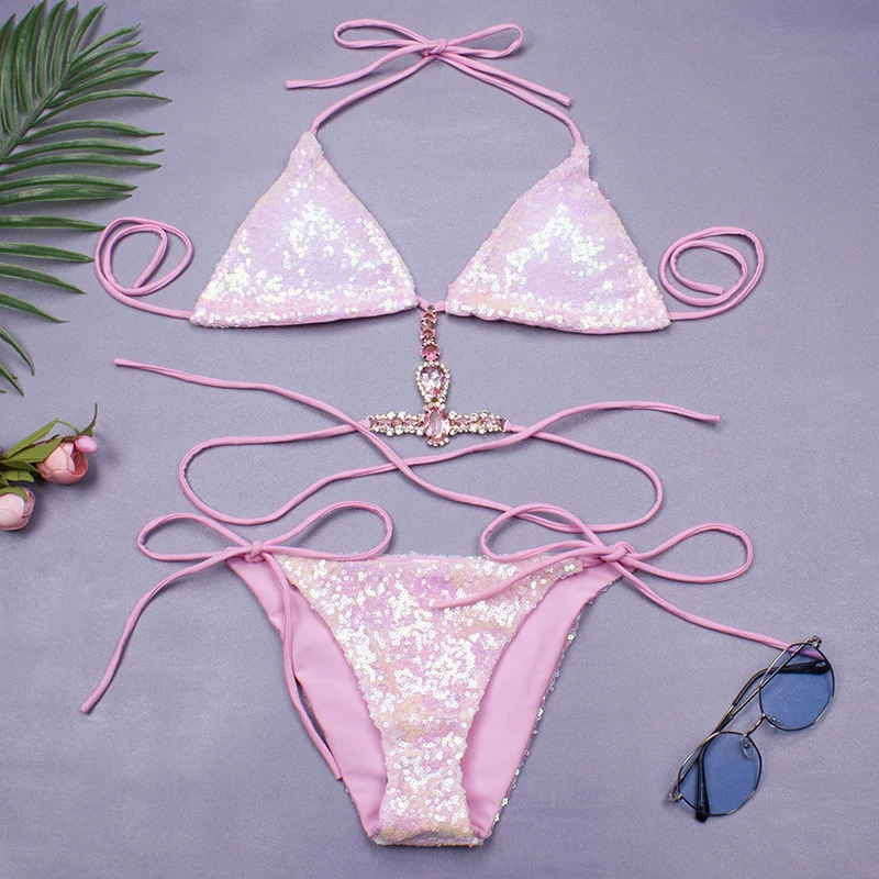 Summer Sequins Sexy Bikinis Swimsuit With Rhinestones Women Swimwear Female Push Up Bikini Beach Swim Wear Bathing Suits Pool Bather 2023