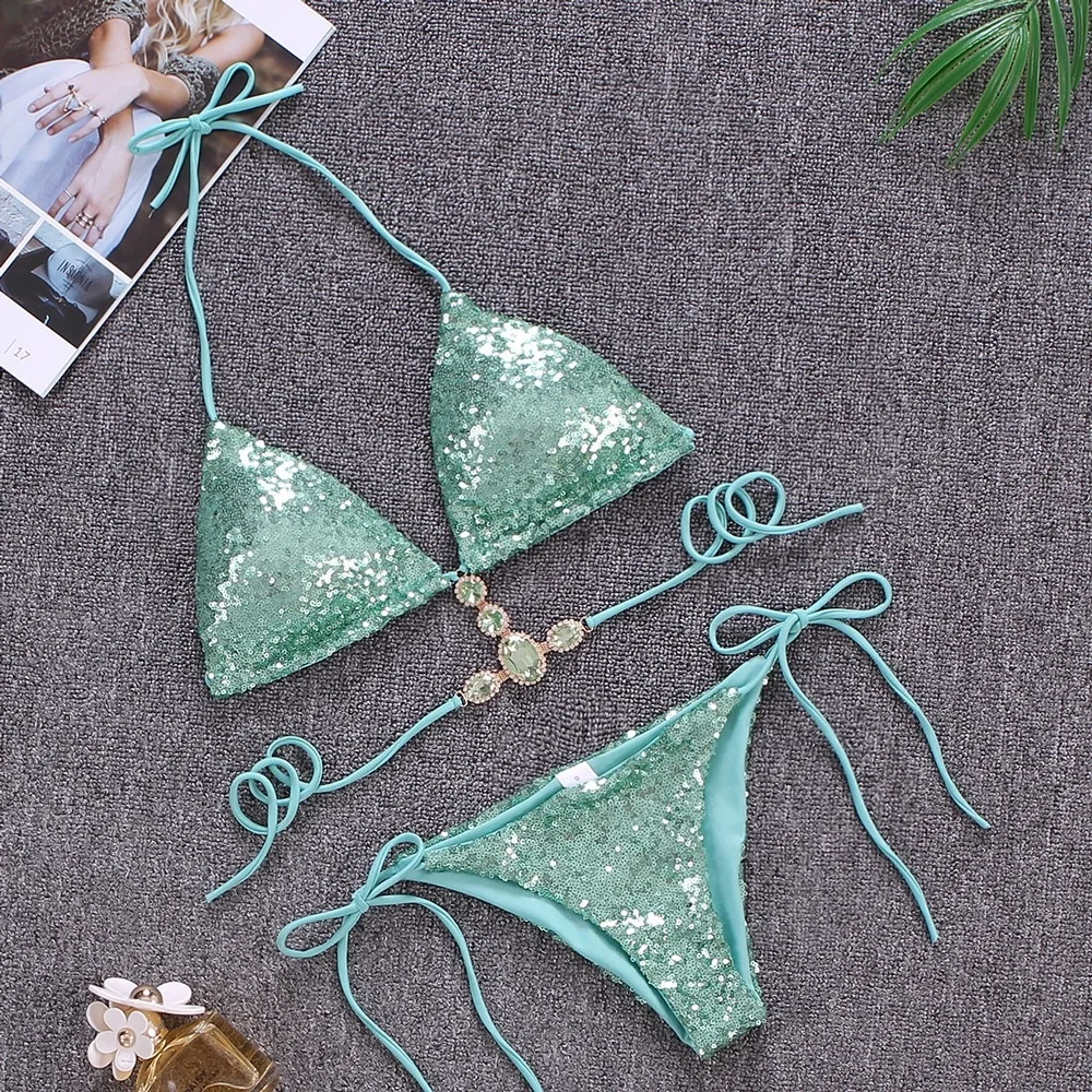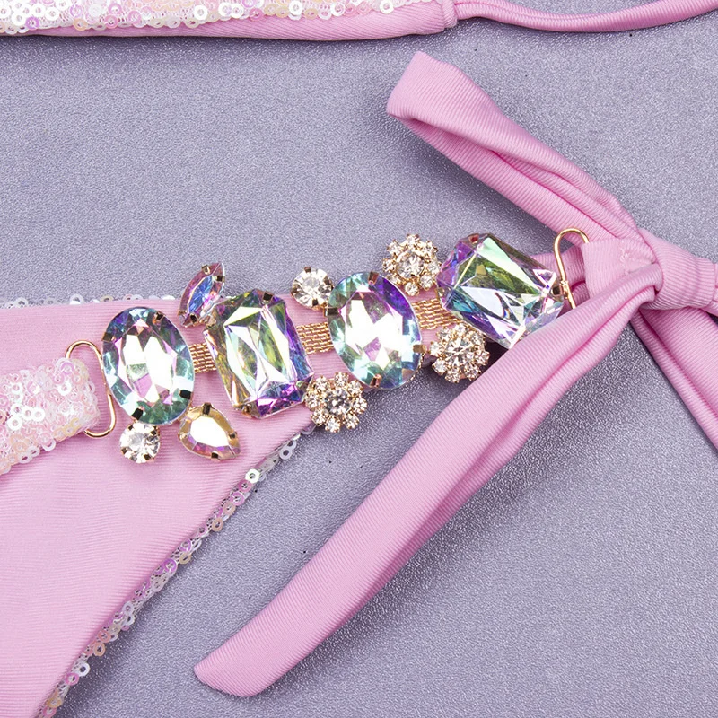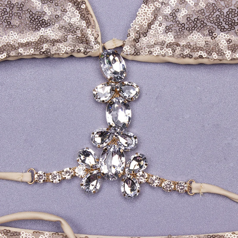 Sequins Sexy Bikinis Swimsuit With Rhinestones Women Swimwear Female Push Up Bikini Beach Swim Wear Bathing Suits Pool Bather