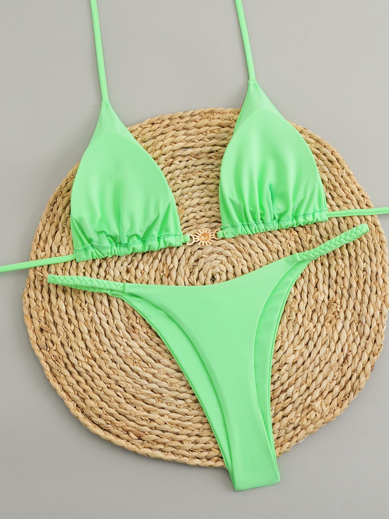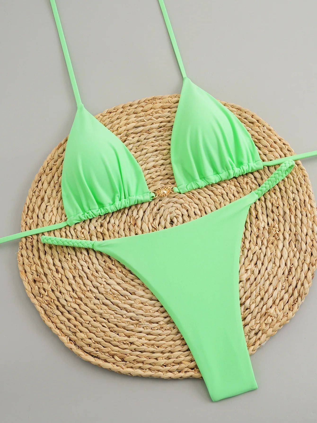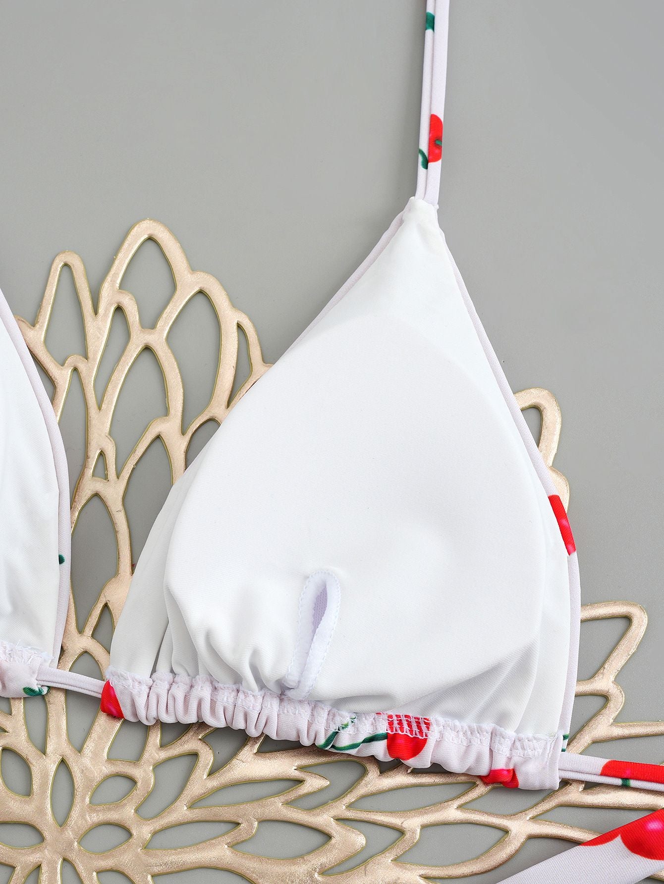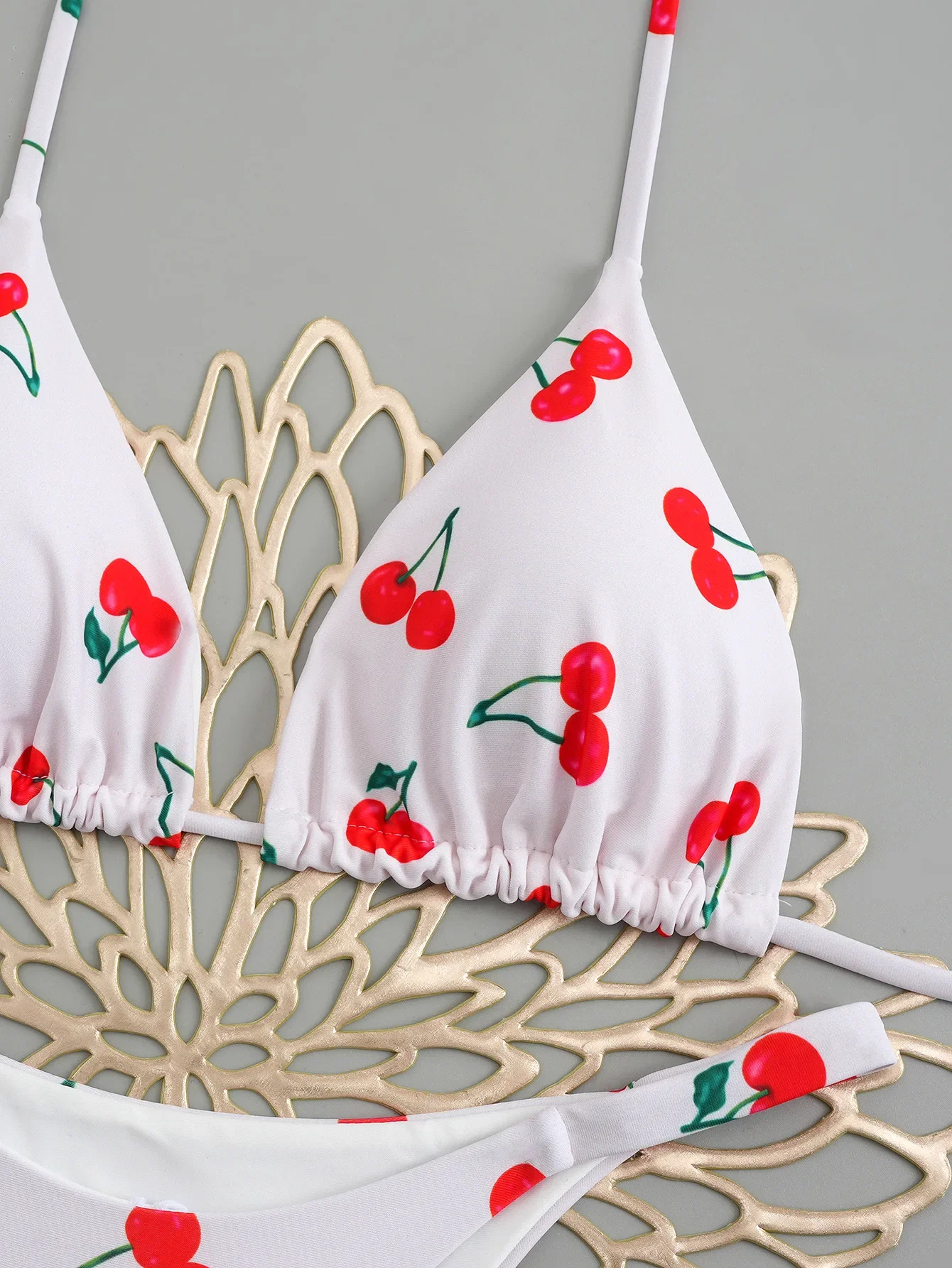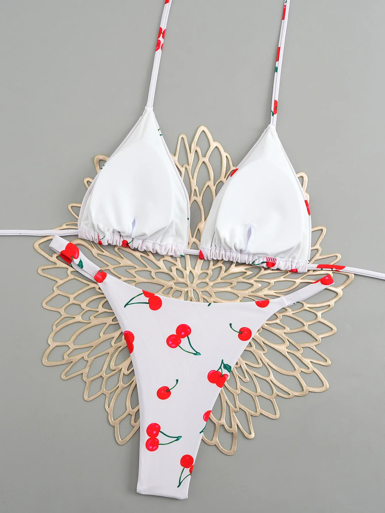 Sexy Cherry Print Triangle Brazilian Bikini Push Up Swimsuit 2 Piece String Bandage Bikinis Swimwear Women Thong Bathing Suit