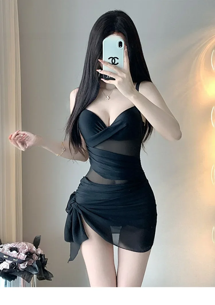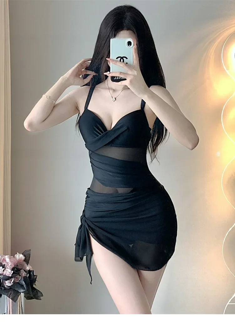 Sexy One-Piece Swimsuit Women Summer Hot Spring Conservative Personality Retro Cover-Up Slimming Solid Color Beach Gathered Swim